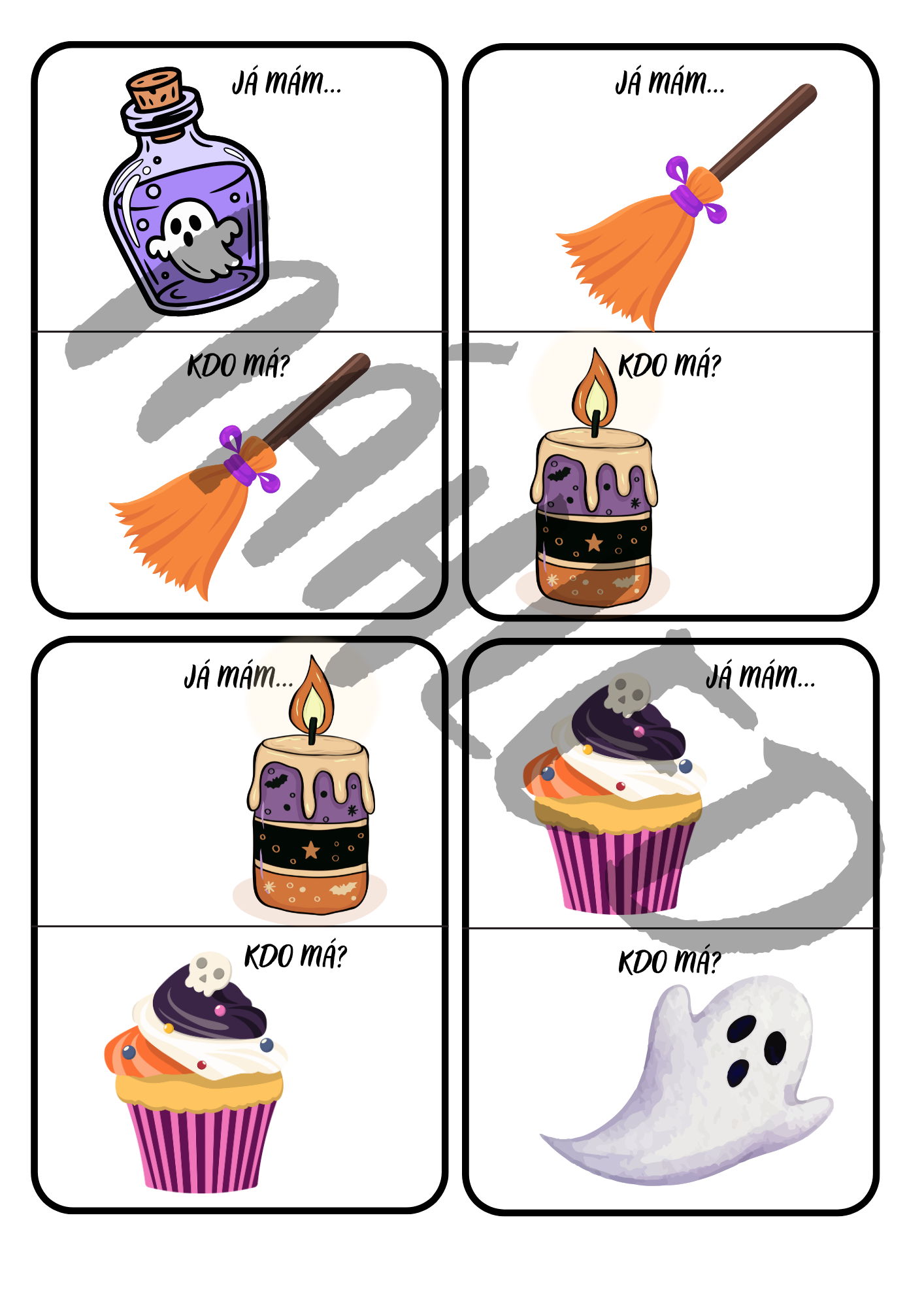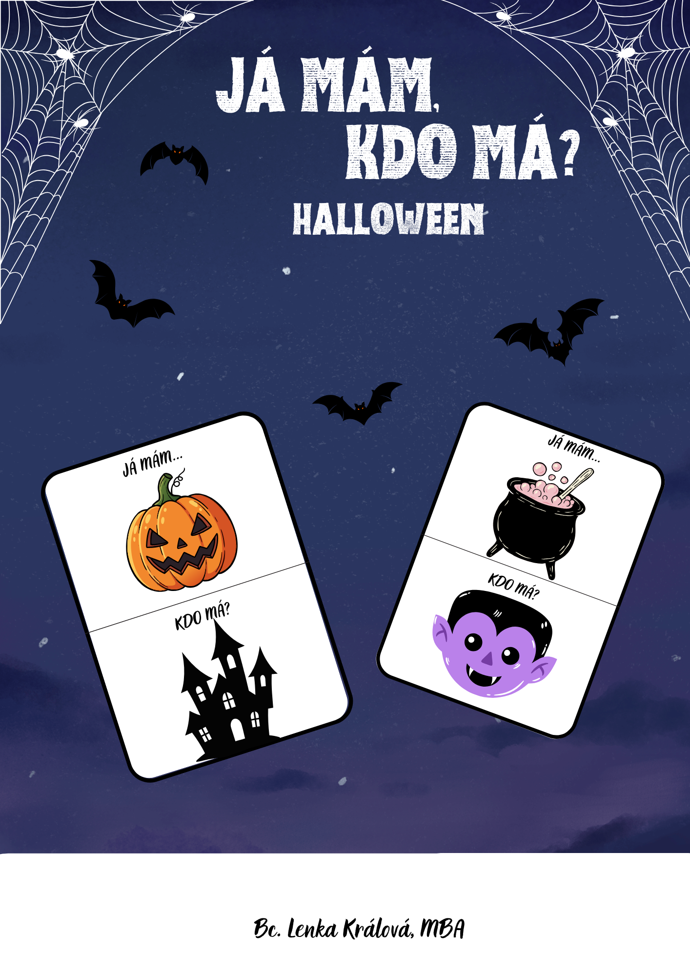 Hrací karty - Já mám, kdo má? (24 karet) s tématikou halloweenu.