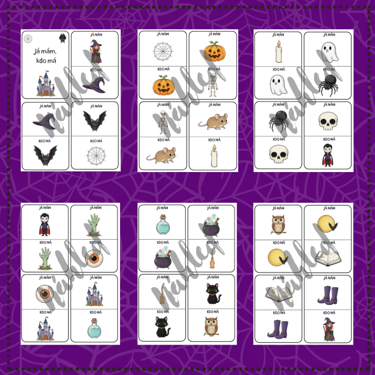 Každé dítě dostane kartičku. Jeden začíná: „Já mám… Kdo má…?“ a hra pokračuje, dokud se neuzavře kruh. Jednoduché, zábavné – a pokaždé jiné!