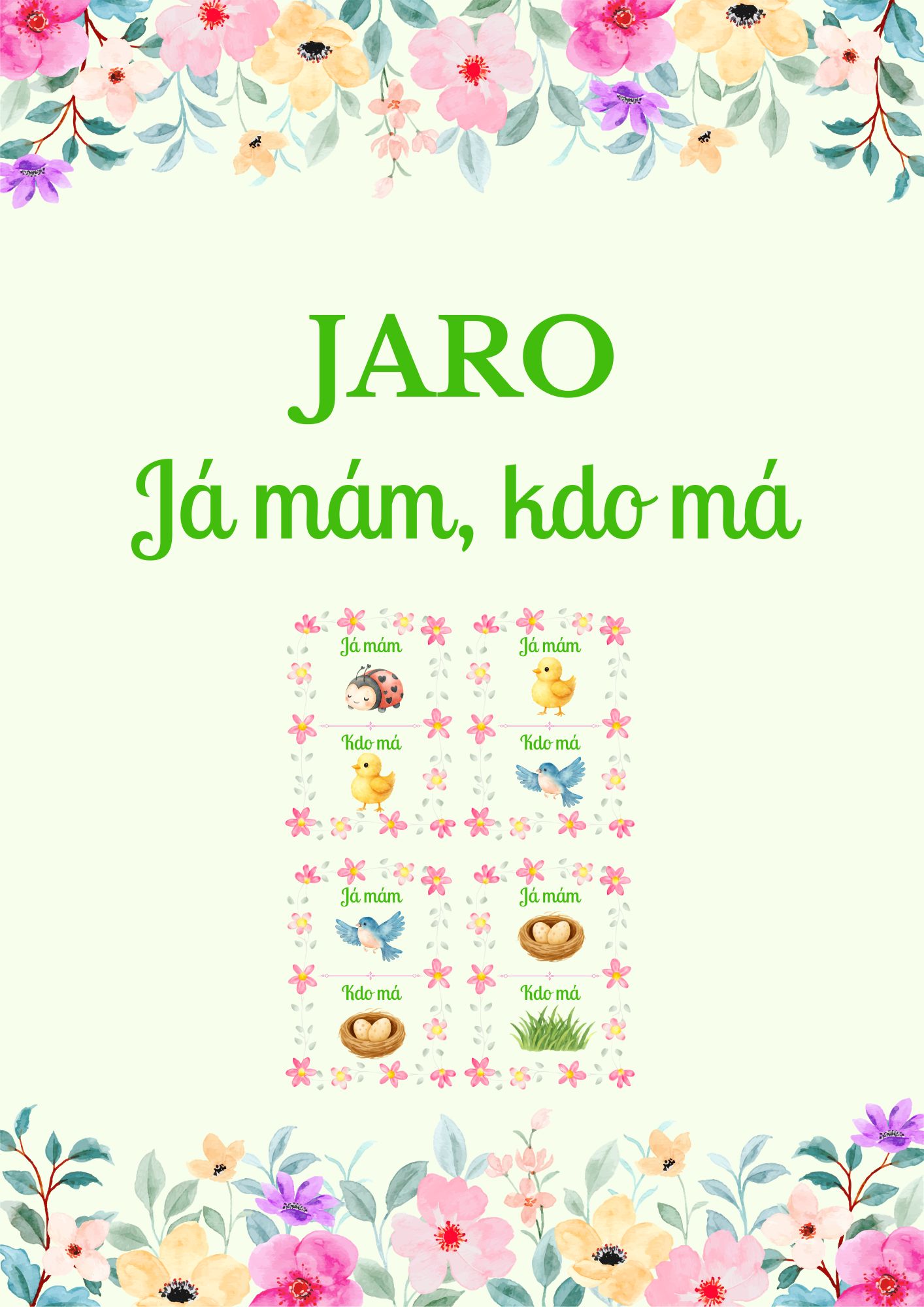 Tato jarní verze oblíbené hry „Já mám, kdo má“ přinese dětem svěží jarní atmosféru. Hra rozvíjí pozornost, postřeh i čtení a zároveň přináší spoustu zábavy.