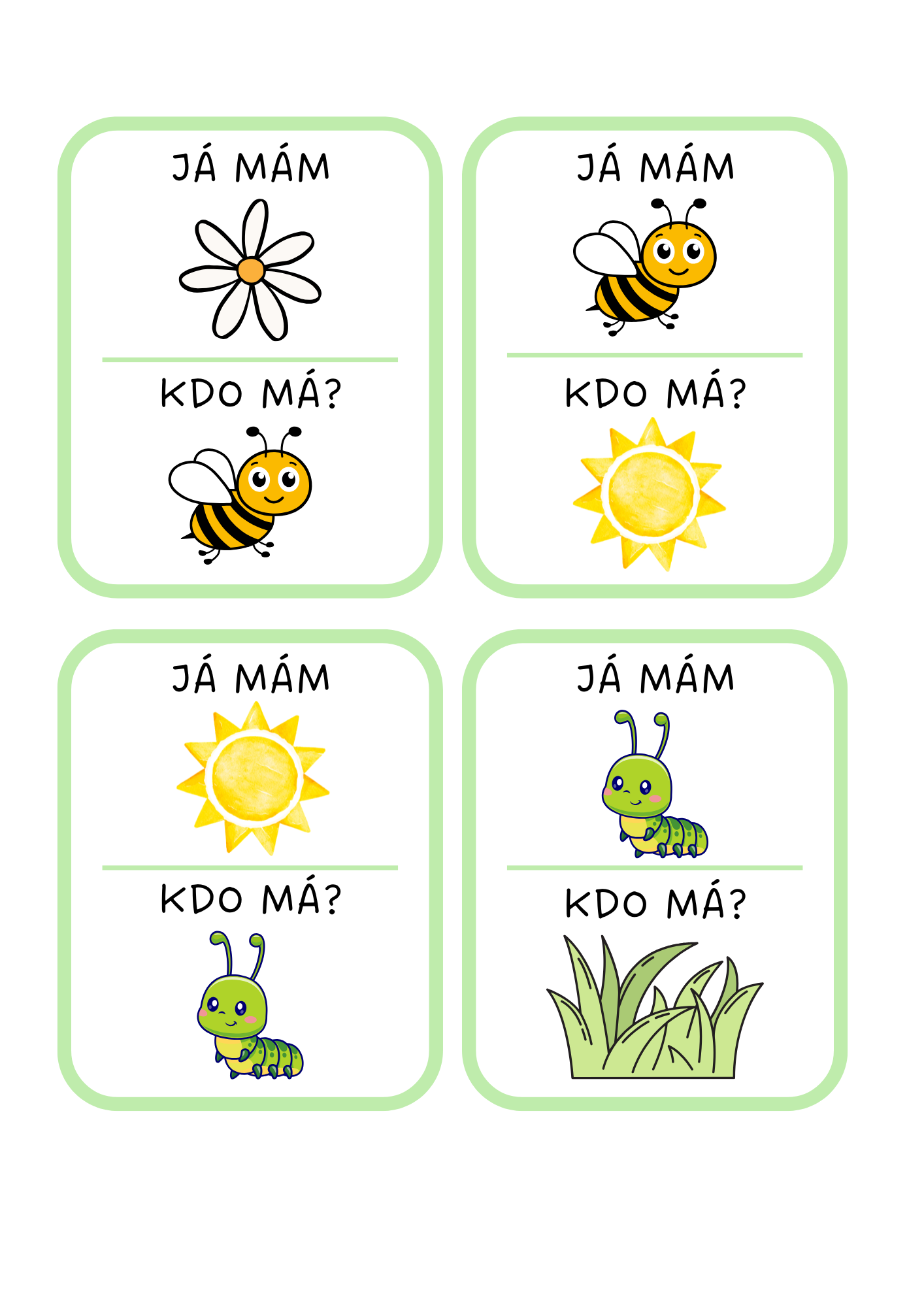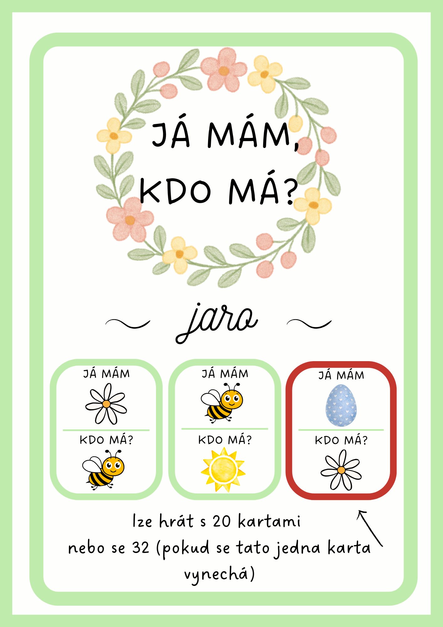 Zábavná hra "Já mám, kdo má?", kterou lze využít pro mladší děti jako domino. Tematicky laděná do jarního období.