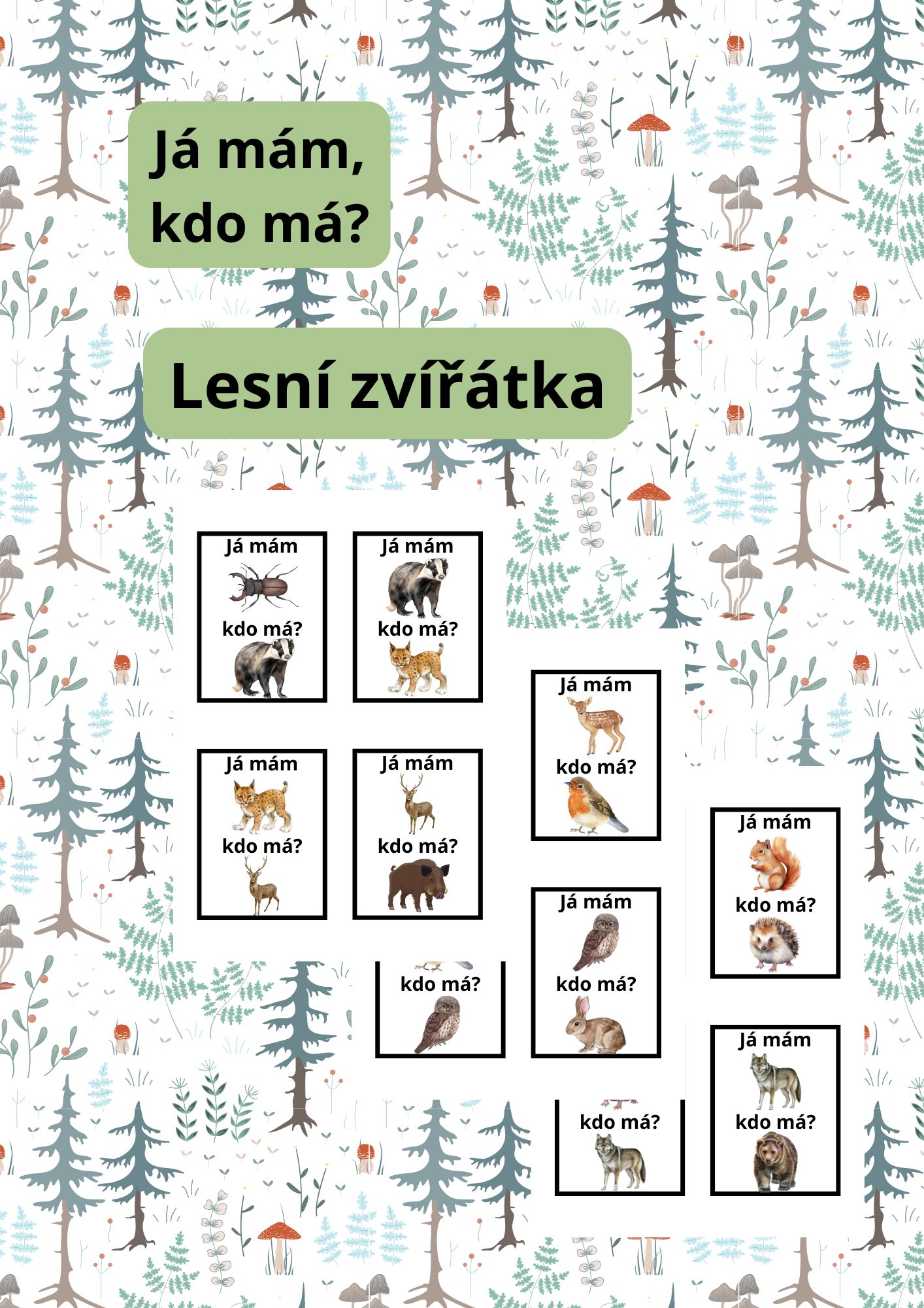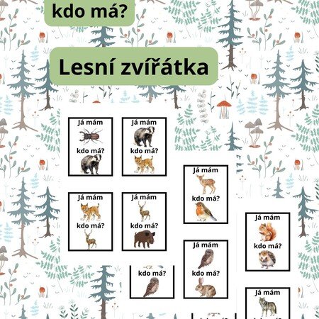 Materiál obsahuje 28 karet s obrázky lesních zvířátek.