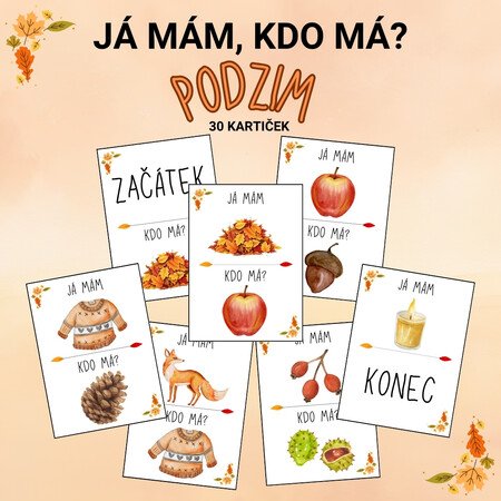 Soubor obsahuje 30 kartiček s podzimní tematikou.