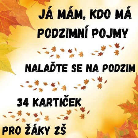 o Materiál představuje známou a jednoduchou hru – JÁ MÁM, KDO MÁ. Pojmy se zaměřují na podzim a jejich úkolem je naladit vás a vaše děti na toto období. Vhodné pro žáky 1. a 2. stupně ZŠ.