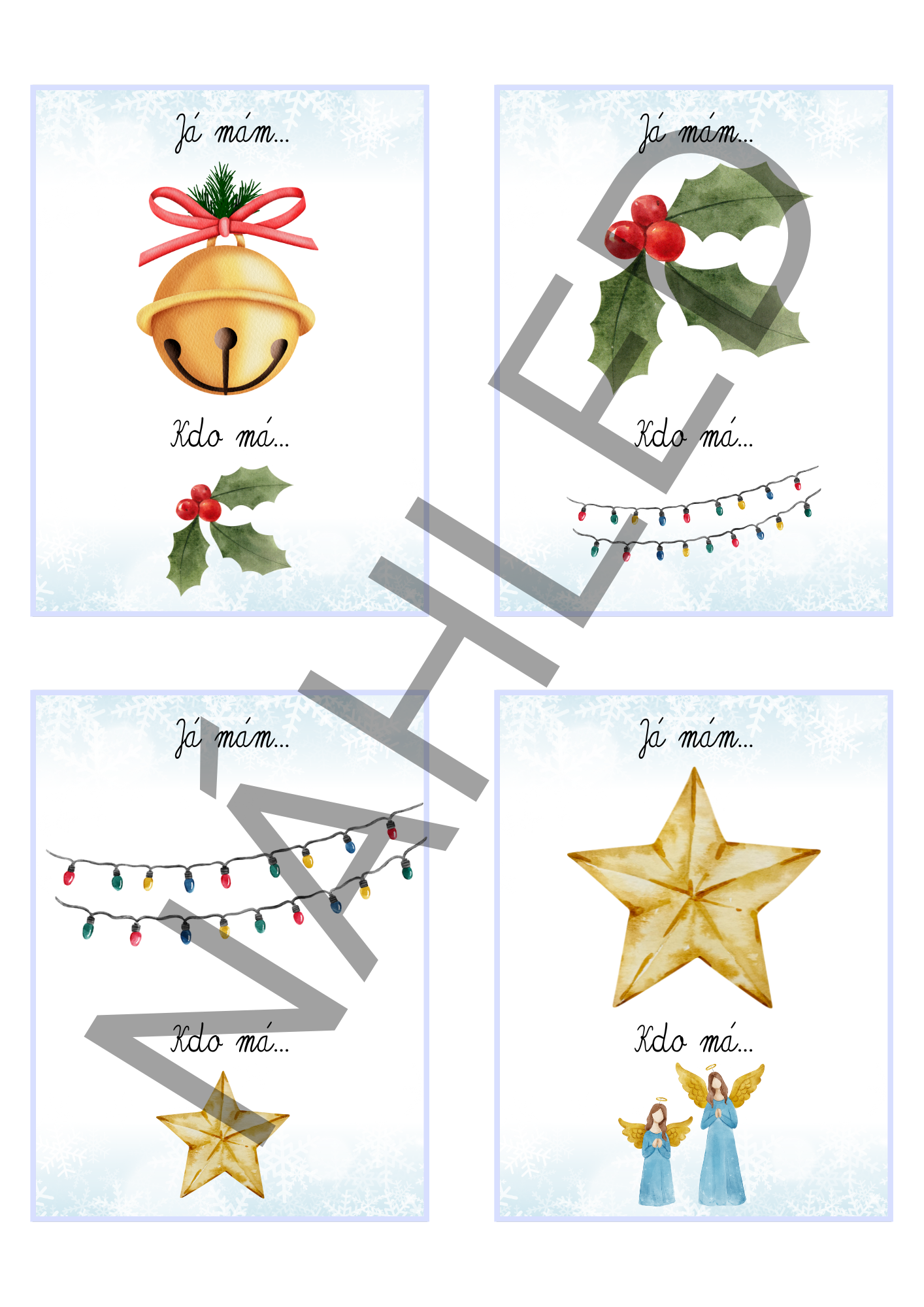 Didaktická hra o 20 obrázkových kartách s vánočními motivy k rozvoji řečového projevu a slovní zásoby