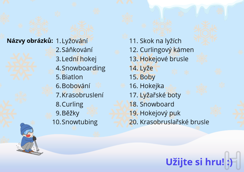 Nezařazené k předmětu>Já mám, kdo má>Batole (1 - 3 roky)>MŠ>Školní družina>MŠ - předškoláci>❄️ Zima>🏅 Sport