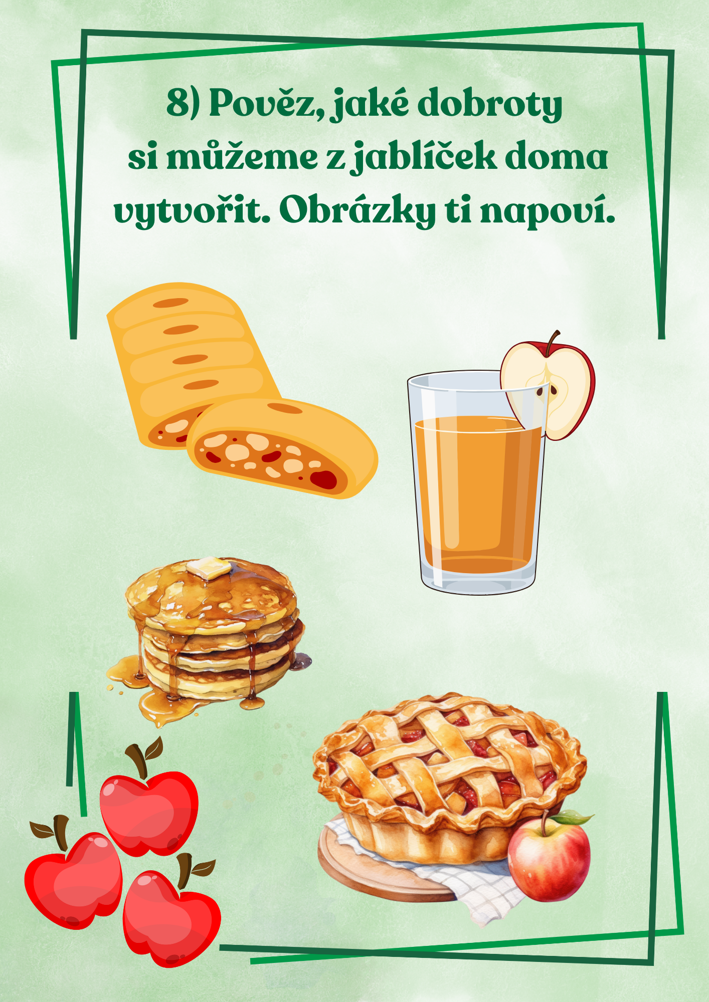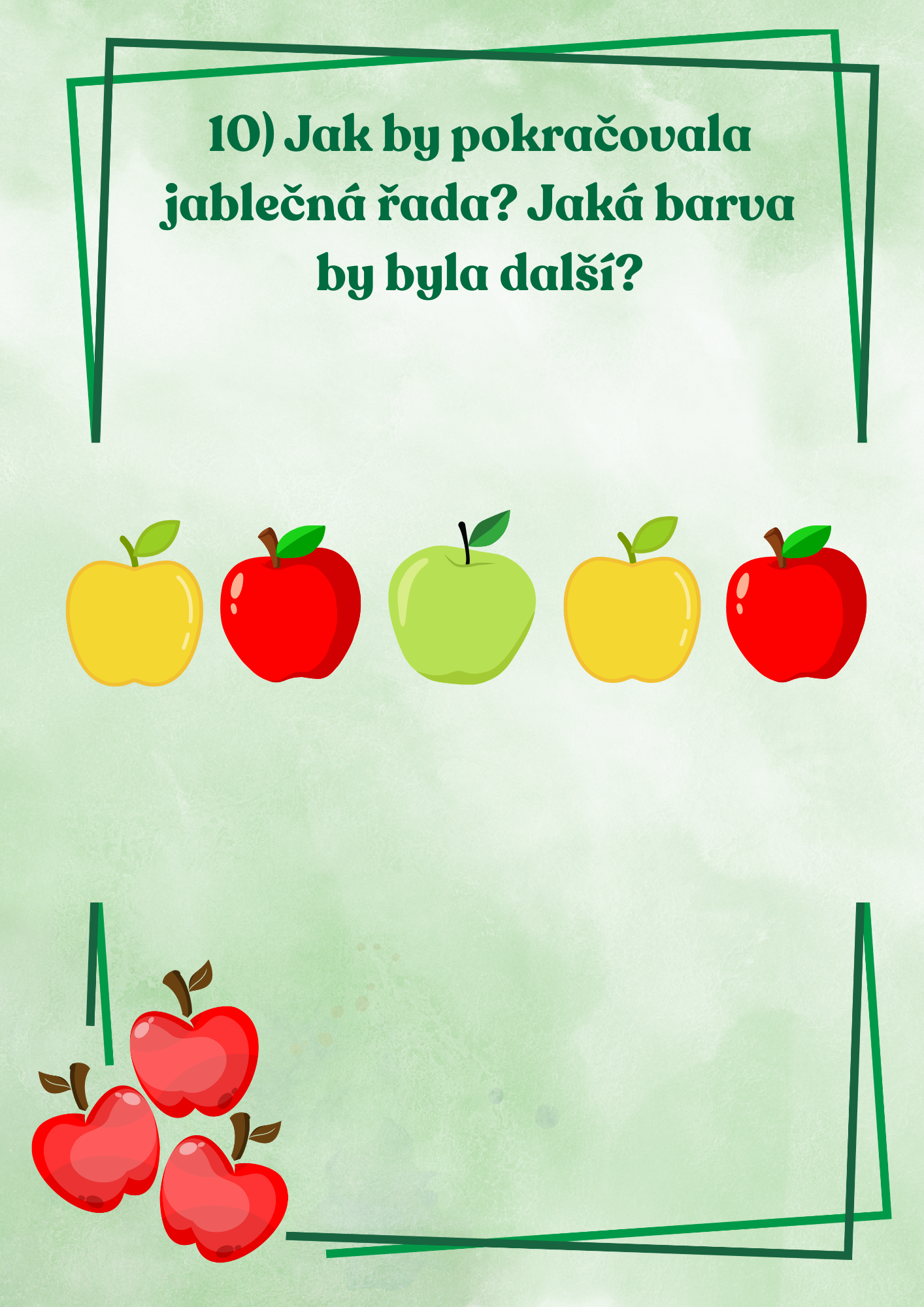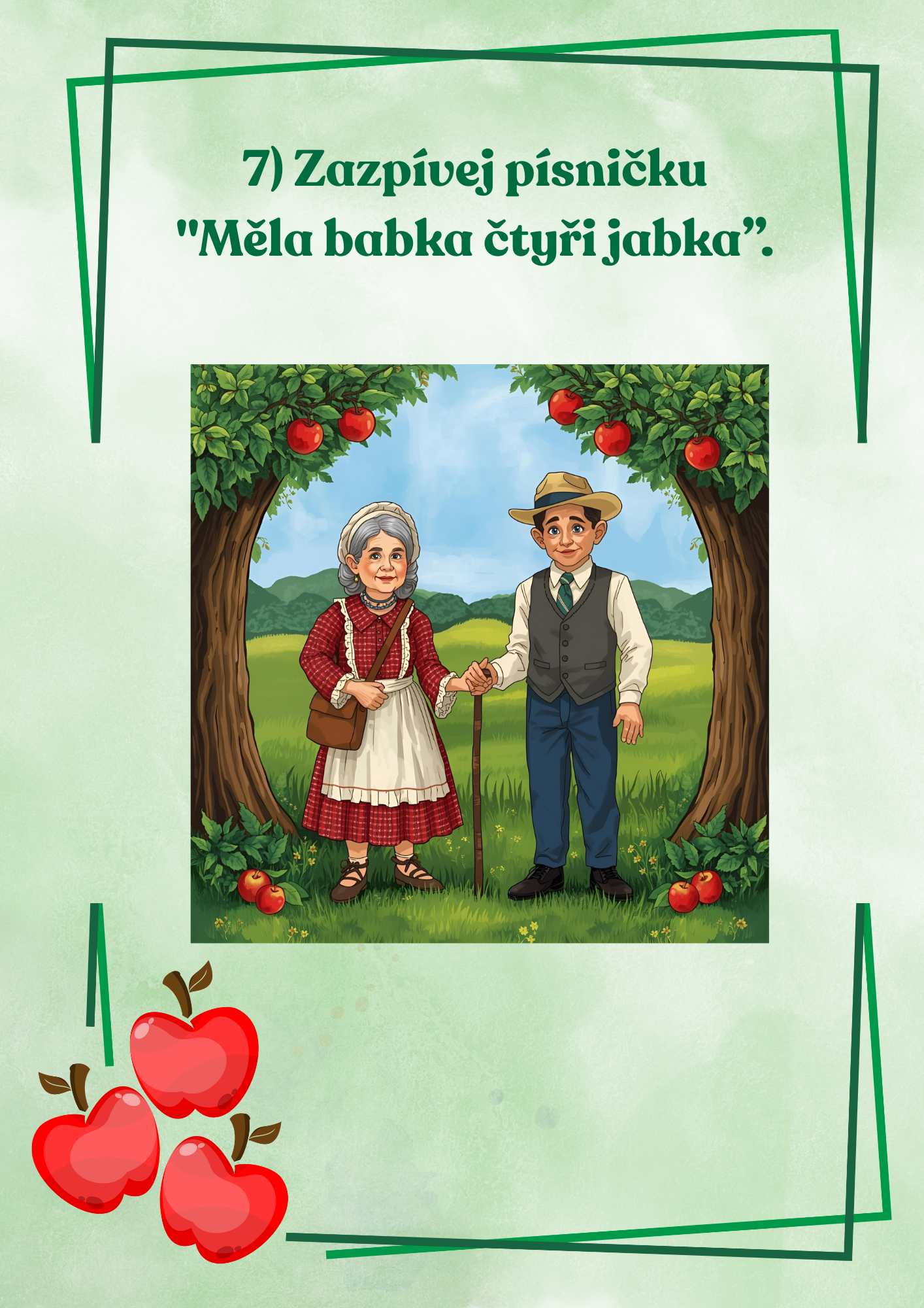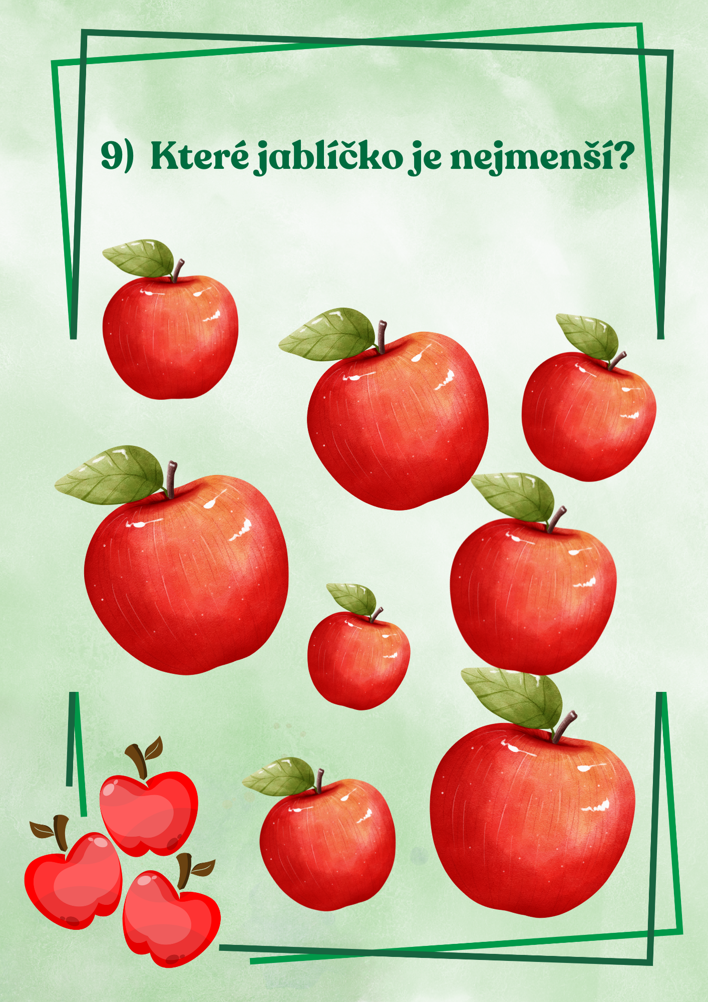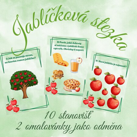 Materiál obsahuje úvod stezky a 10 stanovišť, které již nepotřebují žádné další pomůcky. Jednotlivé úkoly procvičují počítání, určení více x méně, větší x menší, logické uvažování, členění ovoce x zelenina a další znalosti z MŠ, vhodné i pro nejmladší děti na ZŠ. Odměnou za splněné úkoly jsou omalovánky, které jsou součástí souboru.