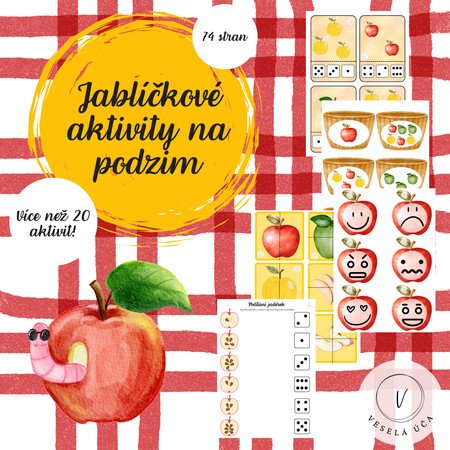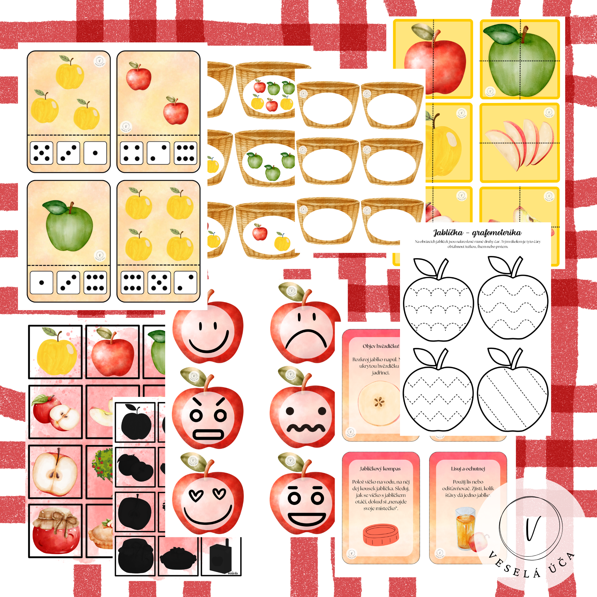 Představujeme kompletní Jabličkovou kolekci – soubor originálních PDF materiálů plný zábavných a edukativních aktivit inspirovaných jedním z nejkrásnějších symbolů podzimu: jablkem. Tato kolekce je pečlivě navržena tak, aby děti hravě rozvíjely jemnou motoriku, grafomotoriku, zrakové a logické vnímání, počítání, řečové dovednosti i emoční inteligenci.