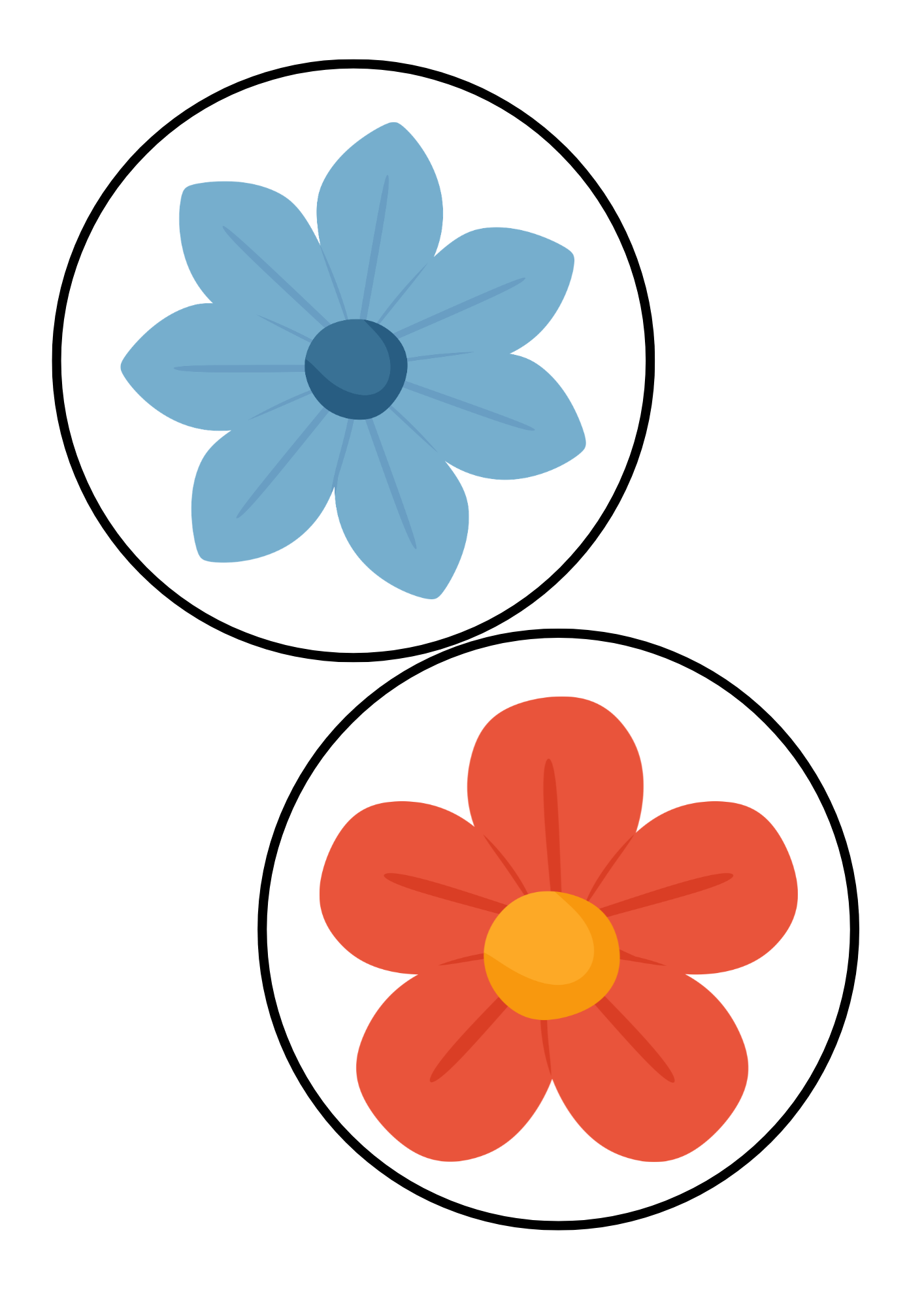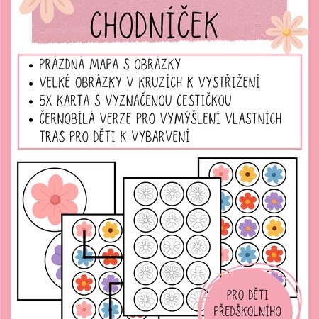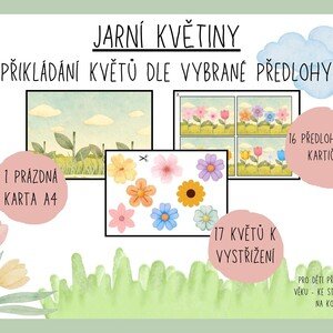 Zábavná aktivita pro děti předškolního věku. Dítě si vybere kartičku se 4 květy, podle které vybírá správné květy z