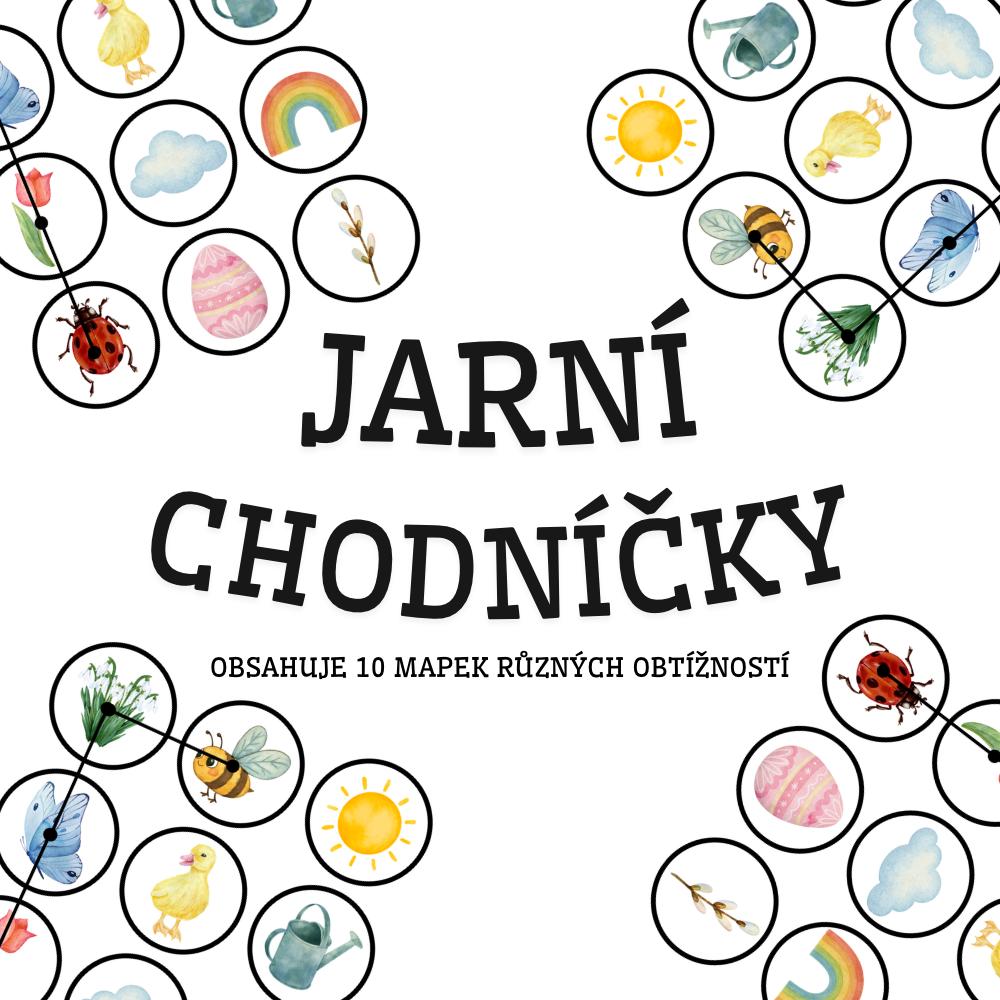 Děti se pohybují po jarních obrazcích podle „mapy“ – sledují vyznačenou trasu.