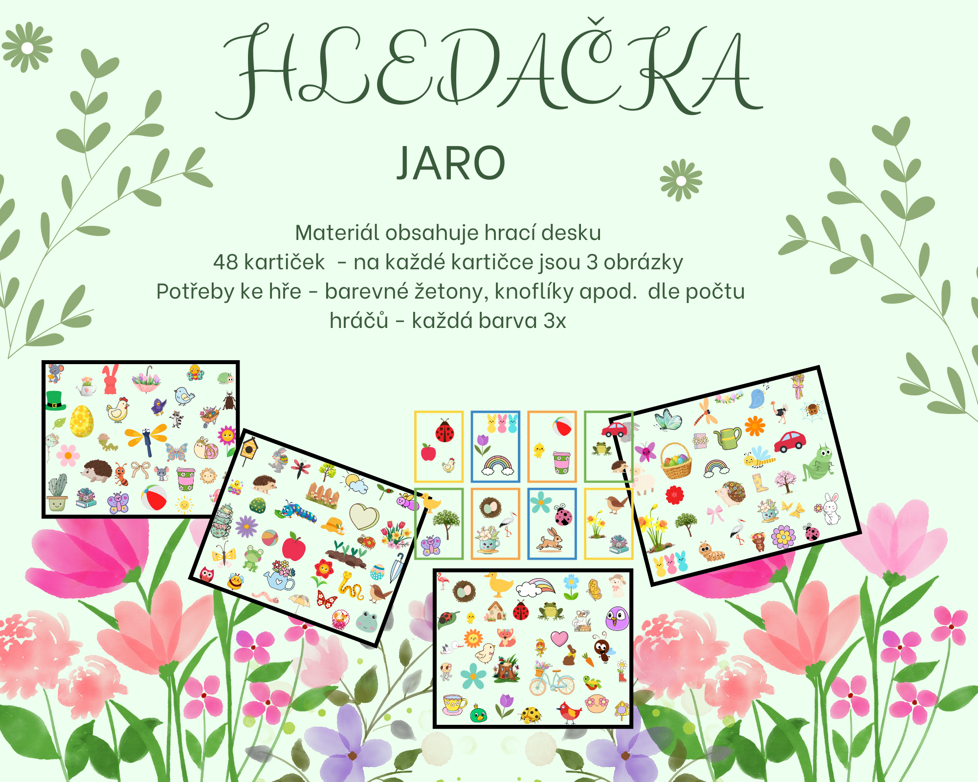 Jarní hledačka je vhodná pro děti v MŠ, školní družině i třeba na přestávky, nebo pro rychlíky např. v prvouce.