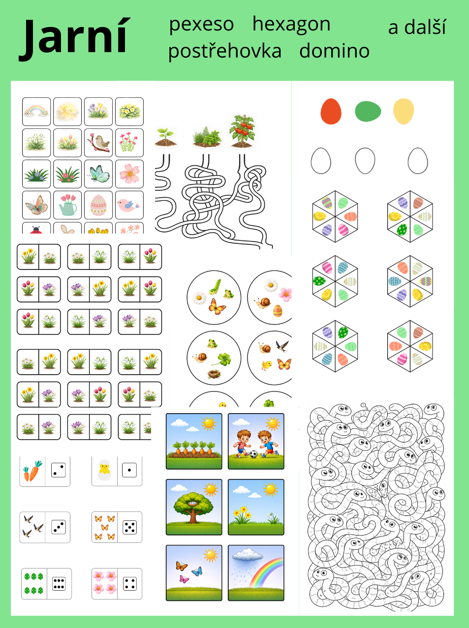 pexeso, domino, hexagon, postřehovku, bludiště, počítání, obrázky pro otázky, omalovánku, postřehové obrázky,