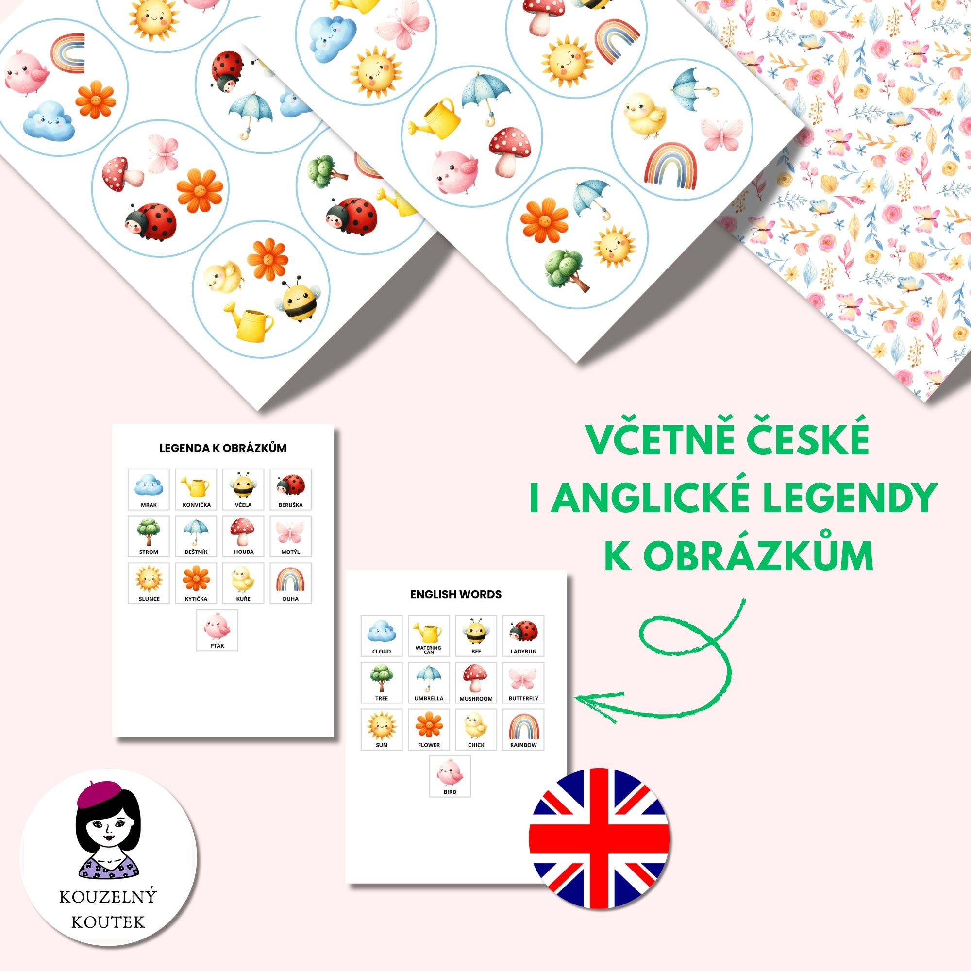 13 karet oboustranných, včetně anglické legendy k obrázkům