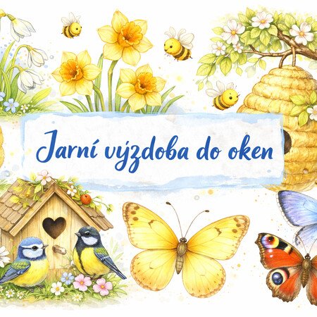 Najdete zde například kuřátko, včelku, různé druhy motýlů (žlutý, paví oko, modrásek), sněženku, narcisky, ptačí budku, včelí úl a další jarní motivy.