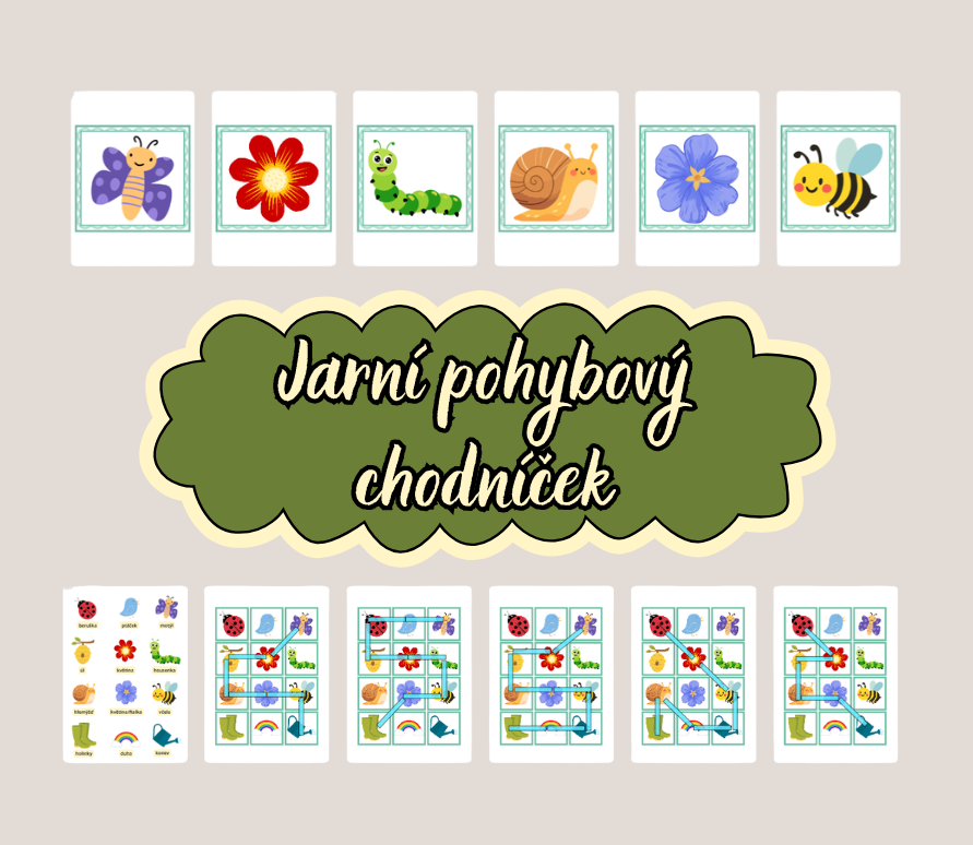 - pohybový chodníček (jednotlivé obrázky se rozmístí podle předlohy na zem a děti dle šablon postupují ve správném směru po určených obrázcích)
