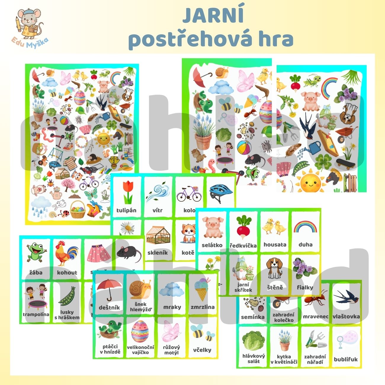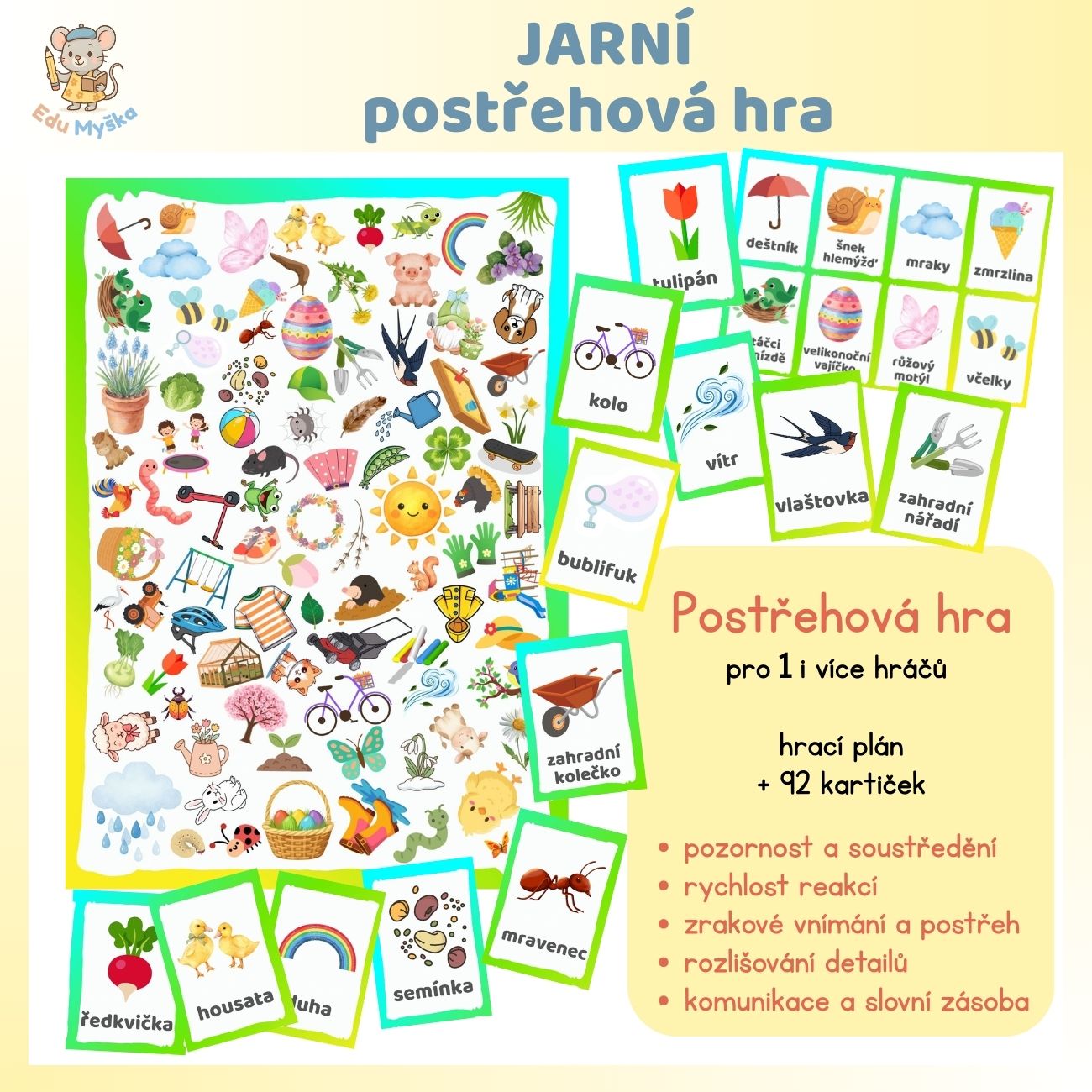 Tato postřehová hra obsahuje jeden velký obrázek se spoustou jarních motivů a 92 kartiček.