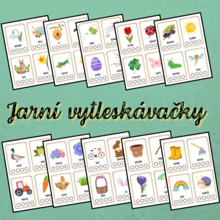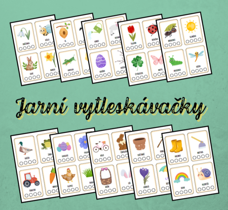 - sadu 40 kartiček k procvičení vytleskávání slabik s jarními motivy