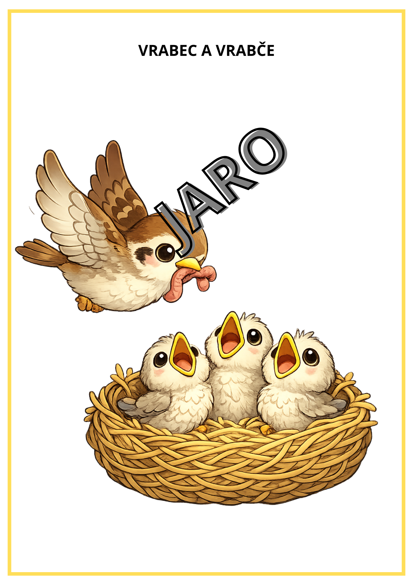 - ptáci a jejich mláďata: vrabec a vrabče, čáp a čápě