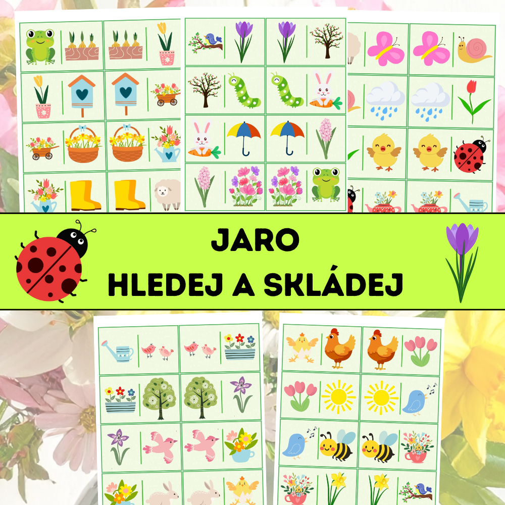 Jaro – hledej a skládej je hravý vzdělávací materiál inspirovaný principem domina, zaměřený na rozvoj zrakové percepce, soustředění a schopnosti porovnávání. Děti vyhledávají stejné jarní obrázky a postupně je navazují do souvislé řady – tzv. „domino hada“.