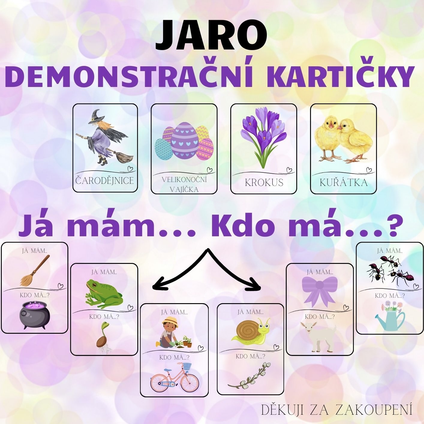 Obsahuje tematické obrázky - jaro, Velikonoce, čarodějnice.