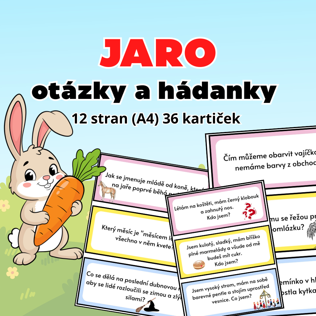 🌷 JARO: Otázky a hádanky (36 výukových karet)