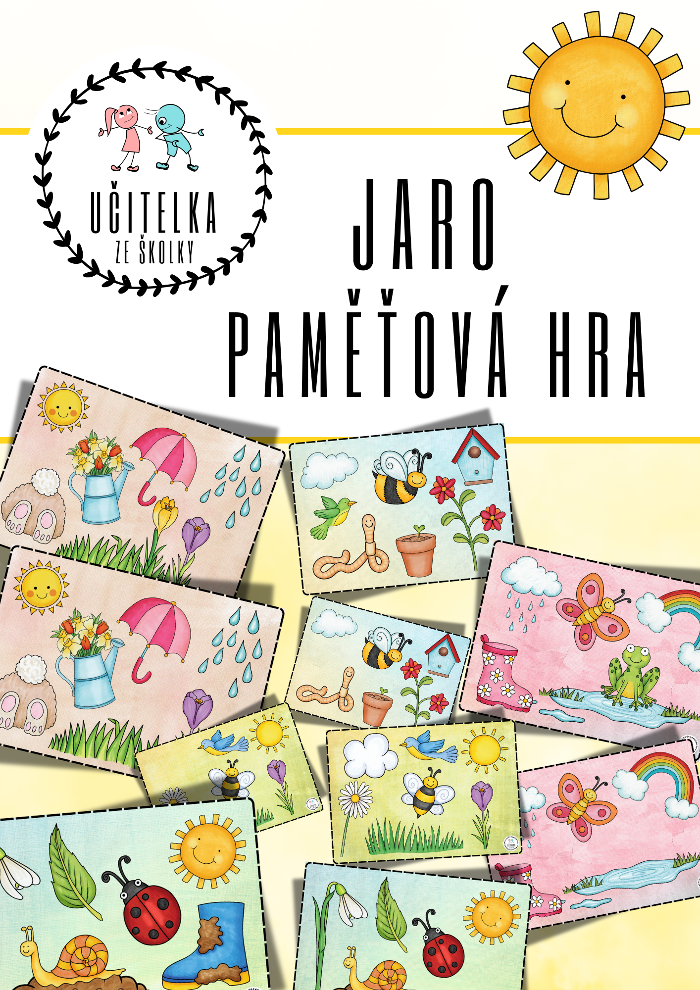 aktivita: Paní učitelka nejprve dětem předkládá kartu, na které jsou všechny obrázky. Po chvíli kartu vymění za stejně barevnou. Úkolem dětí je najít a pojmenovat chybějící obrázek.