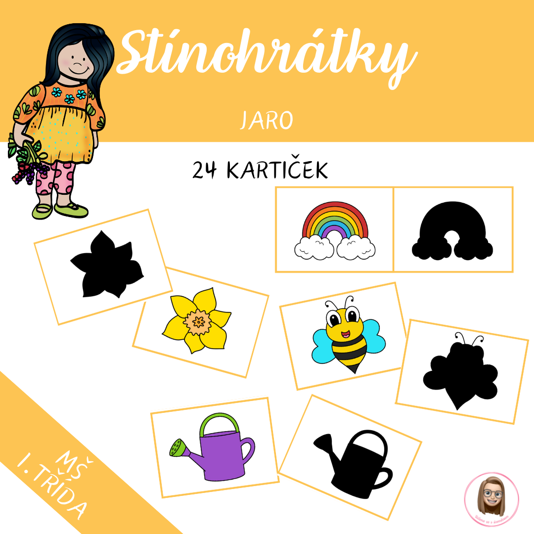 Soubor obsahuje 12 dvojic (24 kartiček) s jarní tematikou. Děti přiřazují barevný obrázek k jeho stínu a rozvíjejí zrakové vnímání, logické myšlení i slovní zásobu.