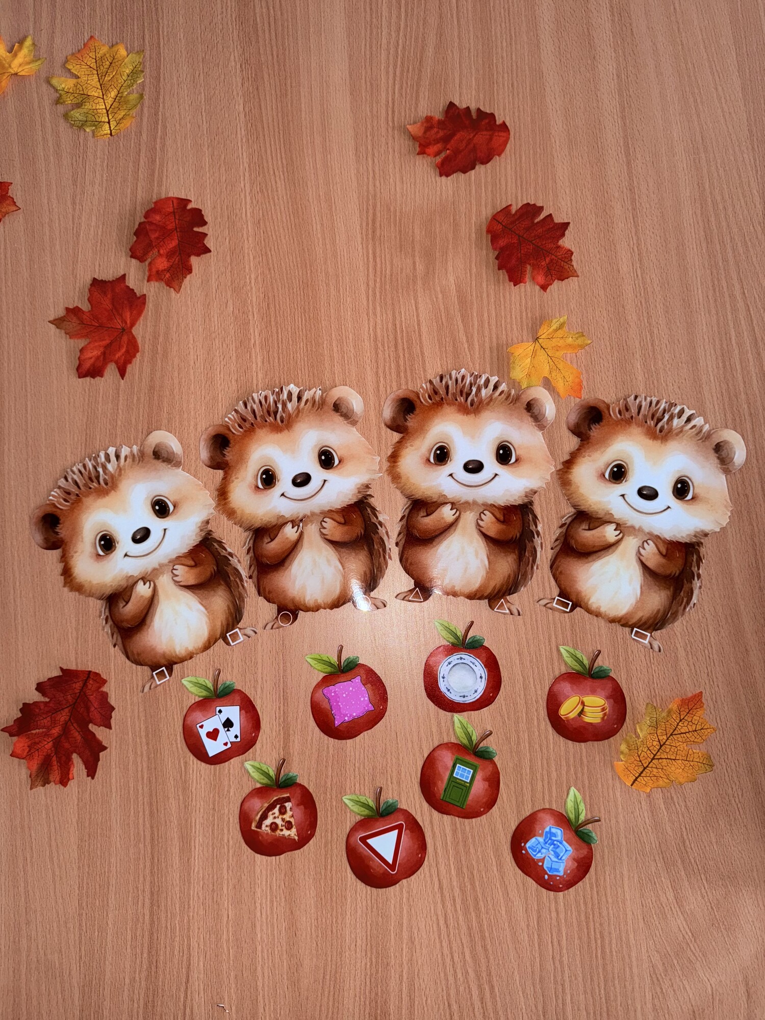 OBSAH: 4 ježci (oboustranní) a 8 jablíček