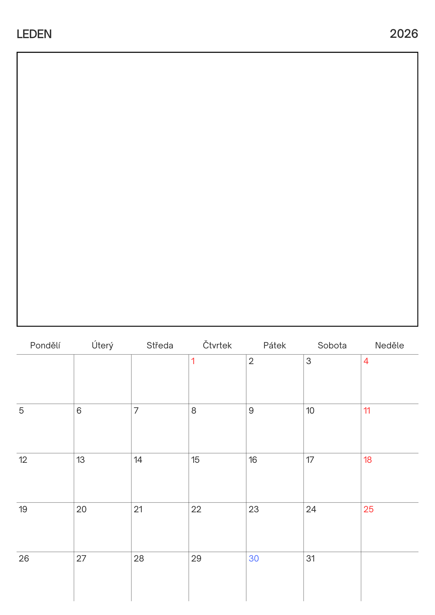 Soubor obsahuje průvodní list, listy nástěnného kalendáře ve formátu A4 k dotvoření. V kalendáři jsou barevně rozlišeny všední dny, neděle a svátky, prázdninové dny (měsíce únor a březen jsou ve více variantách s ohledem na termíny jarních prázdnin v jednotlivých okresech). Okna u dnů jsou větší a umožňují zapsaní plánovaných akcí. Celý soubor je zpracován jednoduchou formou, aby vynikla práce dětí.