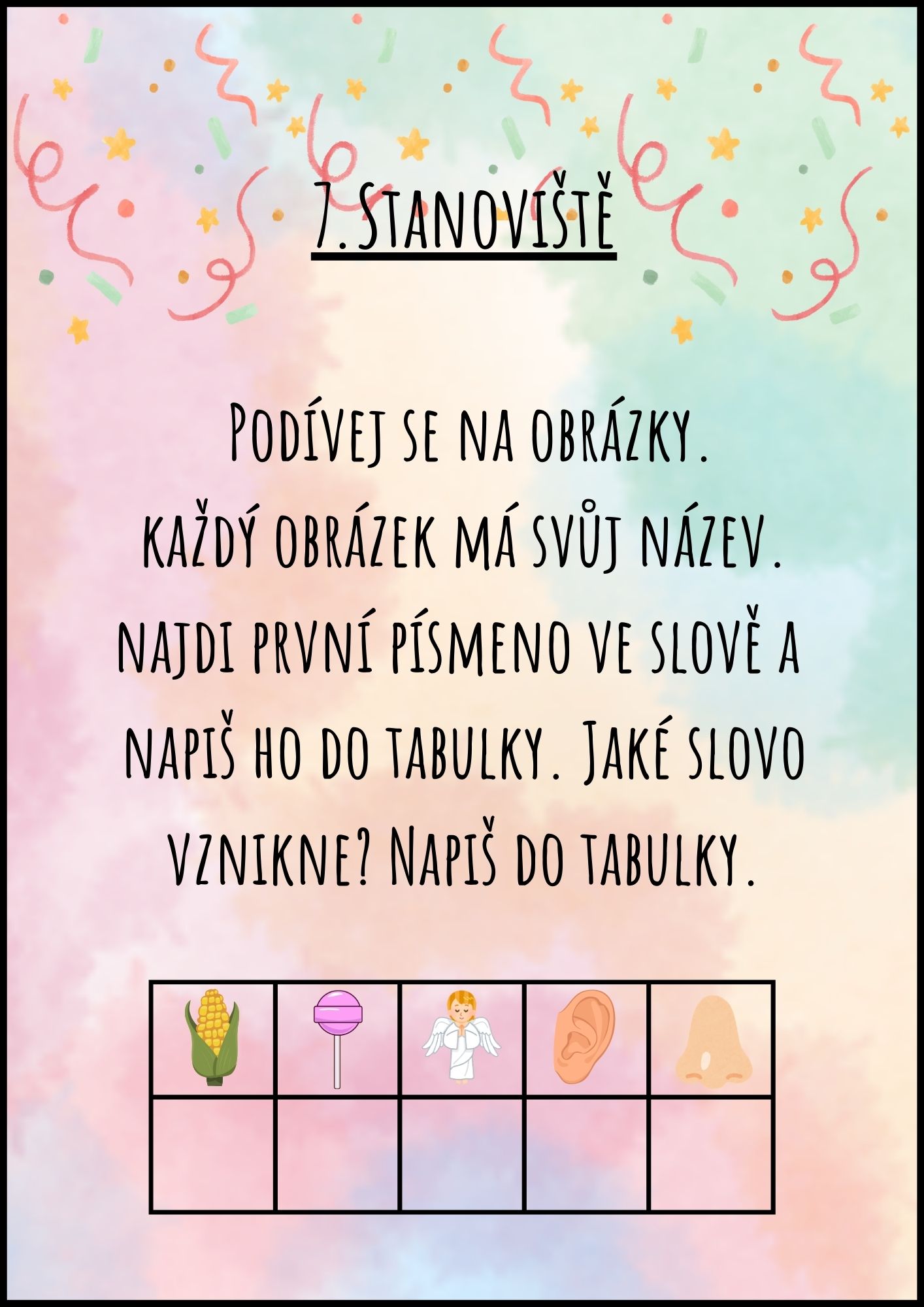 Na jednotlivých stanovištích plní otázky, hádanky a kreativní úkoly.