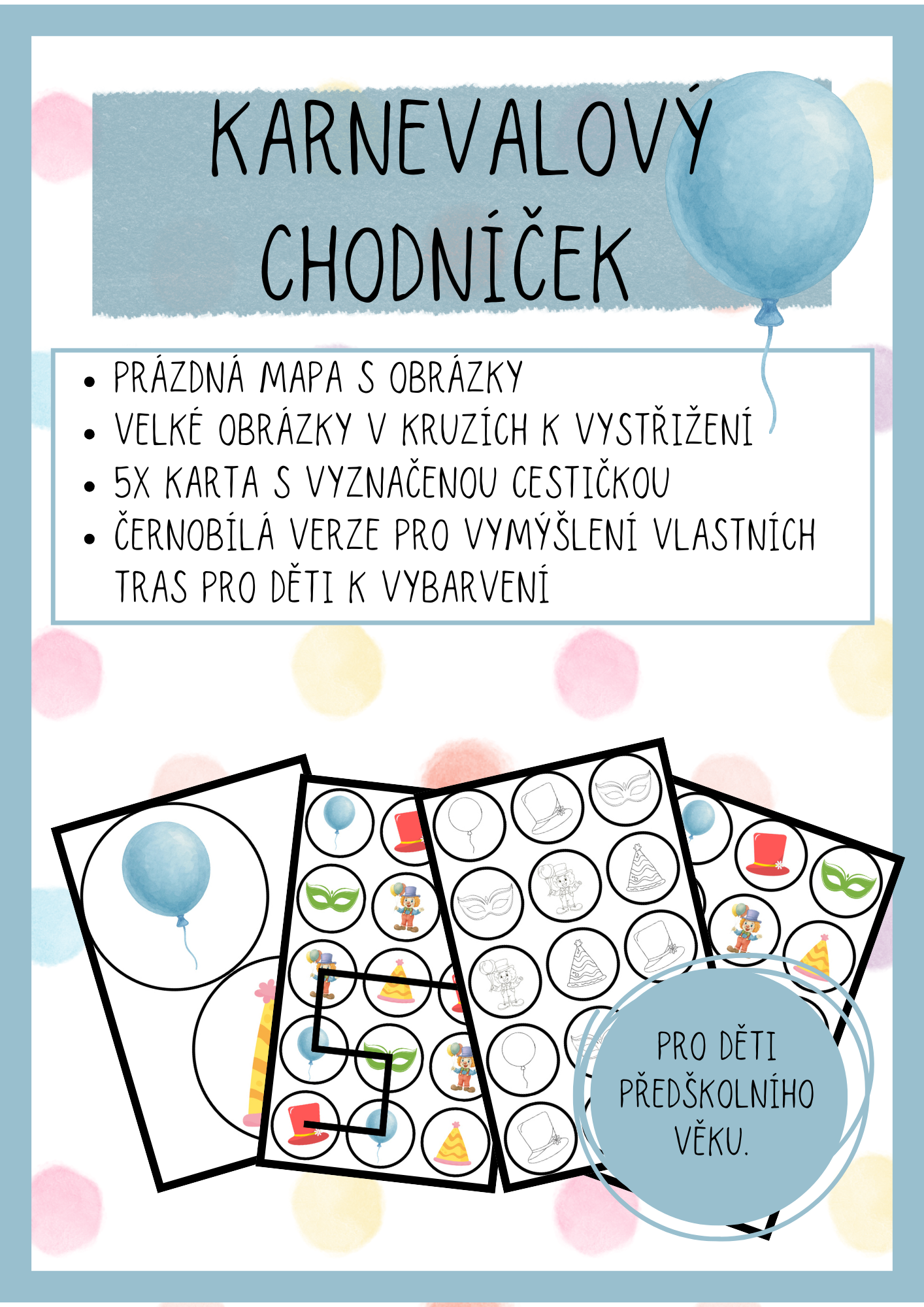 Aktivita, která propojuje pohyb, myšlení, logické uvažování, zrakové vnímání a cit, fantazii, paměť - zaměřeno na karnevalové téma, které je u děti velmi oblíbené.