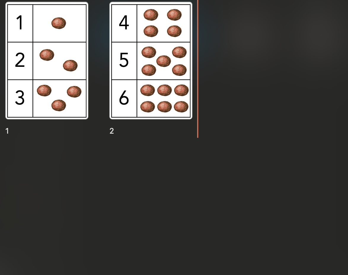 Karty lze vytisknout v malé variantě a děti pak karty používá jako předlohu. Kaštany nedávají přímo na předlohu, ale skládají to bokem na stůl nebo koberec.