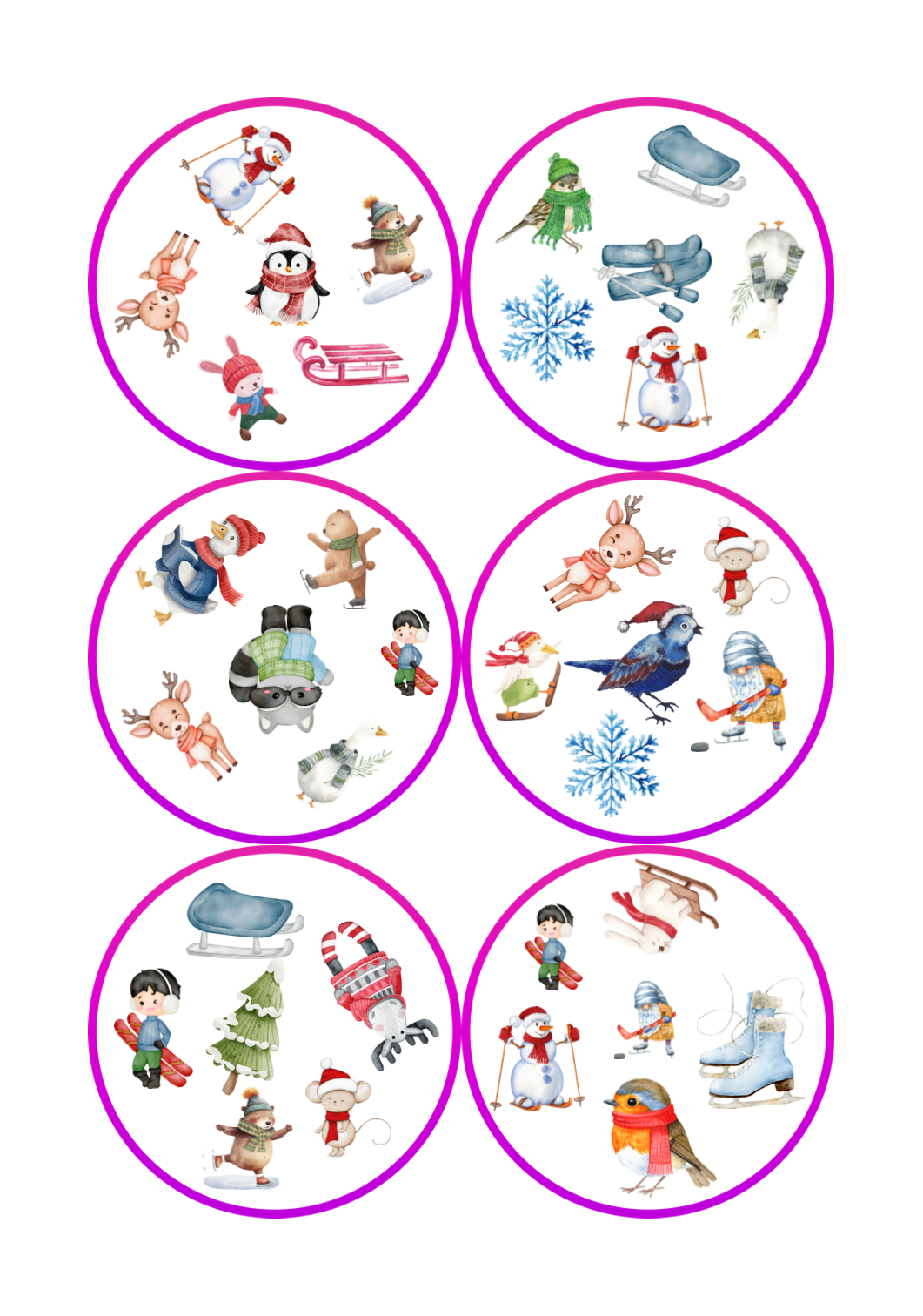 - zvířátka v zimním oblečení a se sportovním vybavením