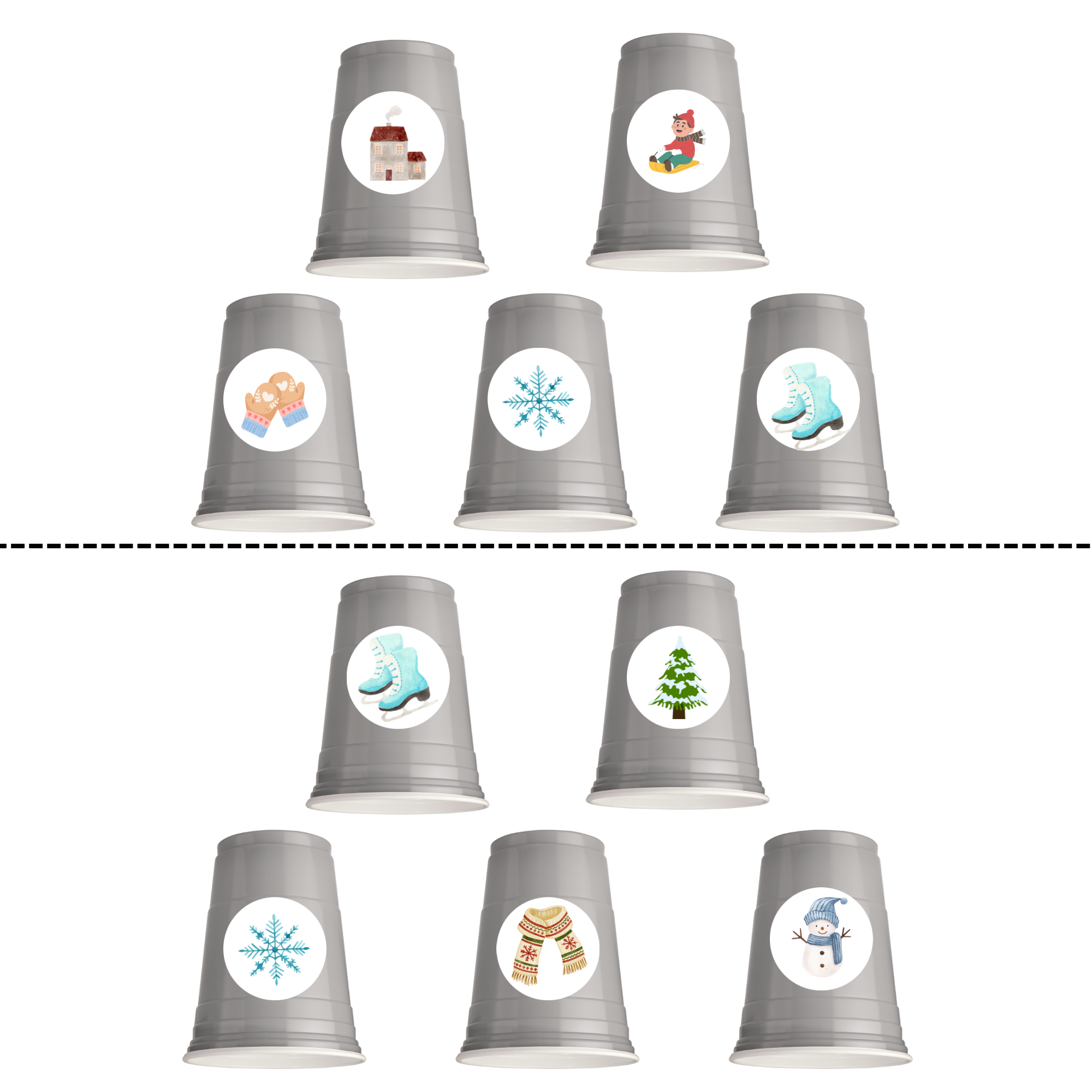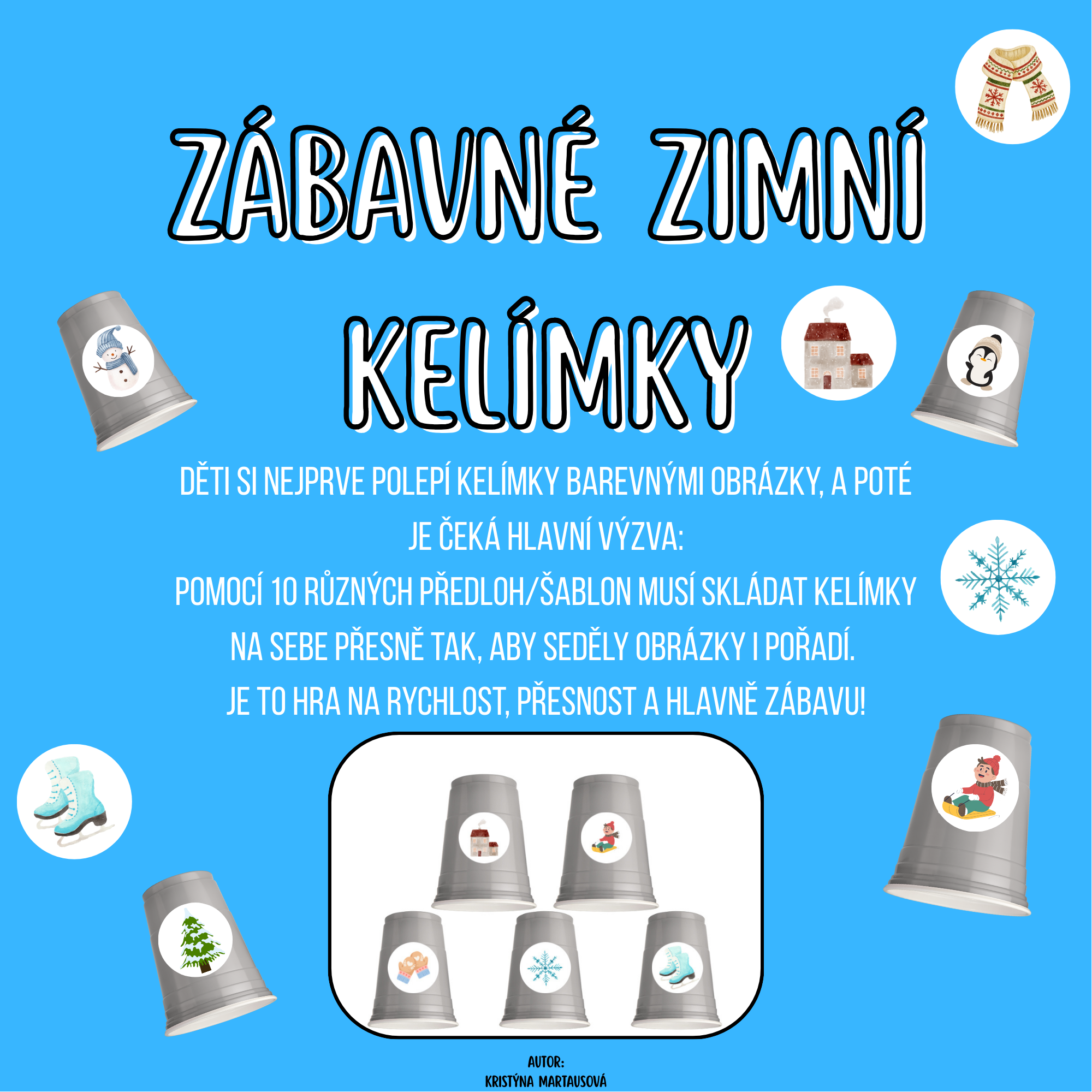 Hledáte novou hru, která děti zabaví a zároveň rozvíjí důležité dovednosti? Vyzkoušejte materiál "ZÁBAVNÉ KELÍMKY" s roztomilými ZIMNÍMI obrázky!