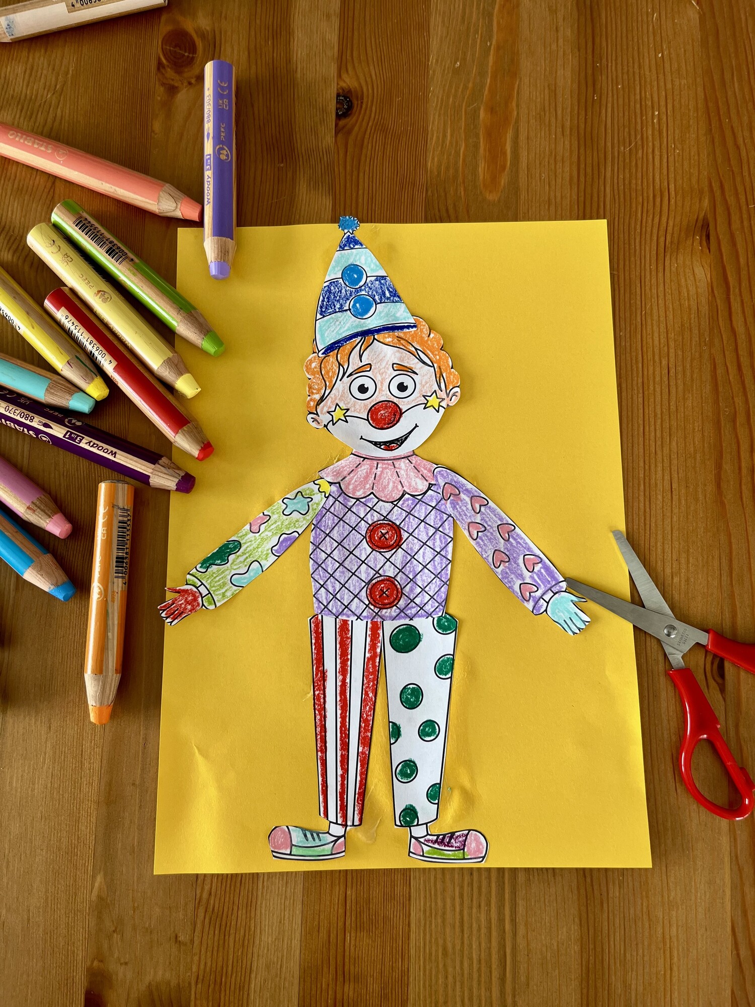 Děti si obrázek nejprve vybarví dle své fantazie, pak si jej vystřihnou a nakonec přilepí na barevný papír.