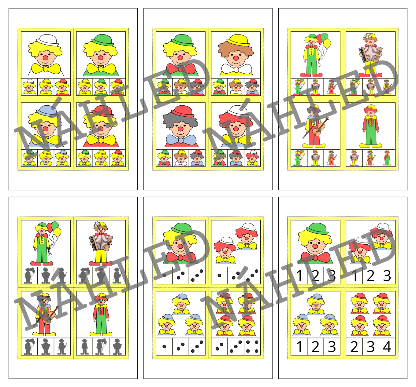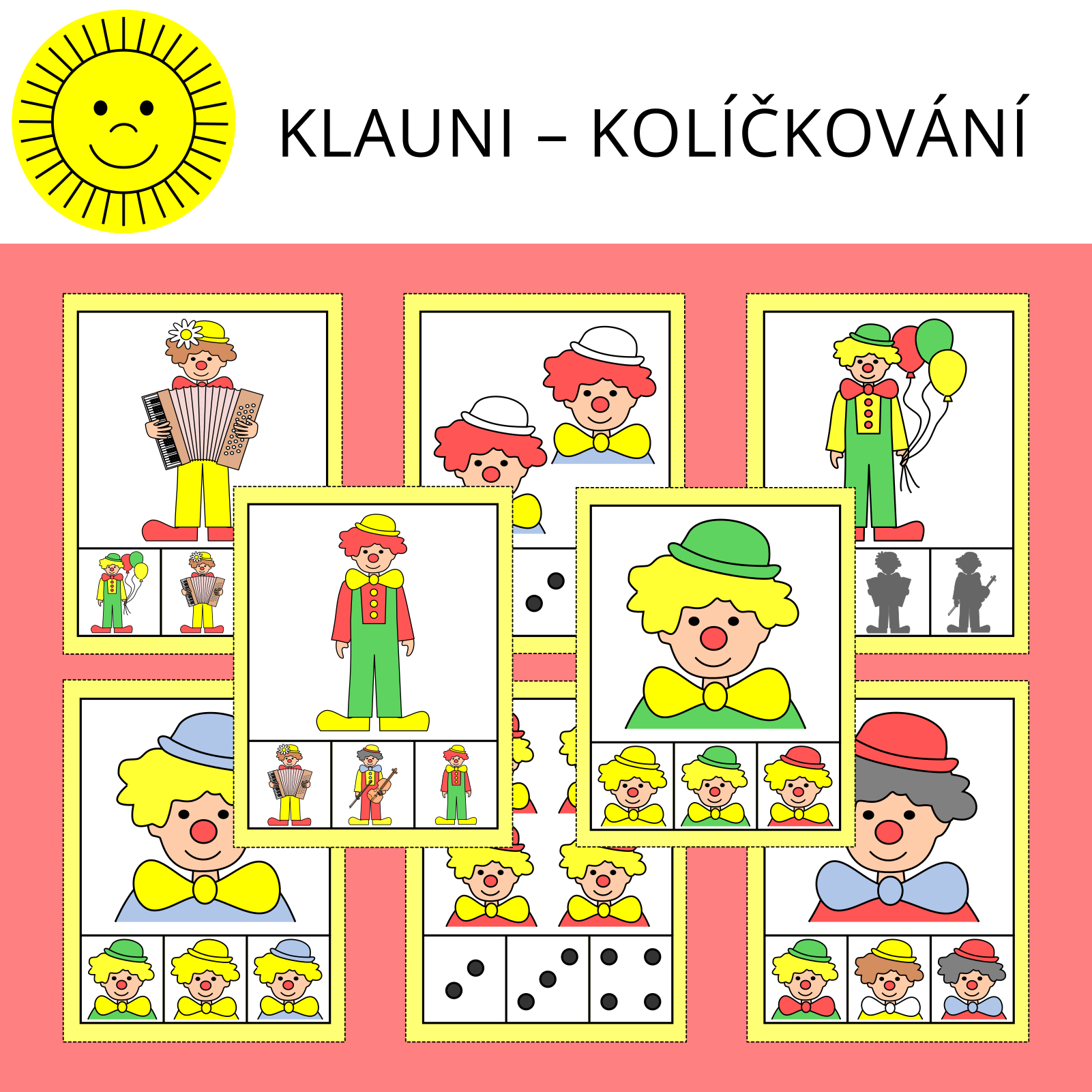 Materiál na téma klauni slouží k procvičení zrakového vnímání a počítání. Obsahuje 24 kartiček.