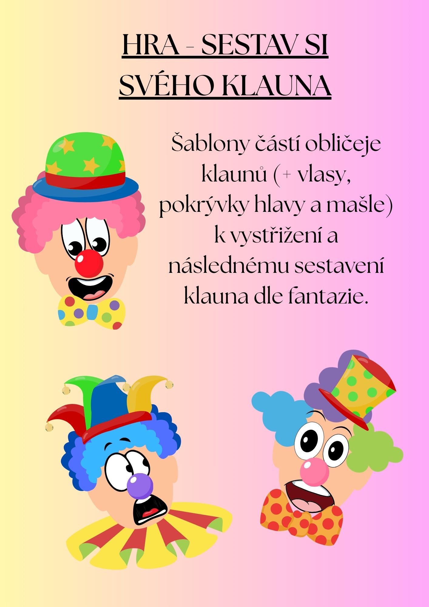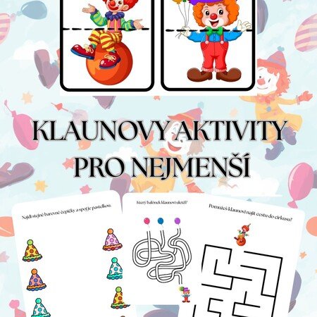 Veselý tematický soubor Klaunovy aktivity je vytvořený speciálně pro nejmenší děti, které rády objevují svět hrou, barvami a fantazií. Klaun jako hravý motiv děti přirozeně vtáhne do činností a podporuje jejich tvořivost, zrakové vnímání i jemnou motoriku 🎈
