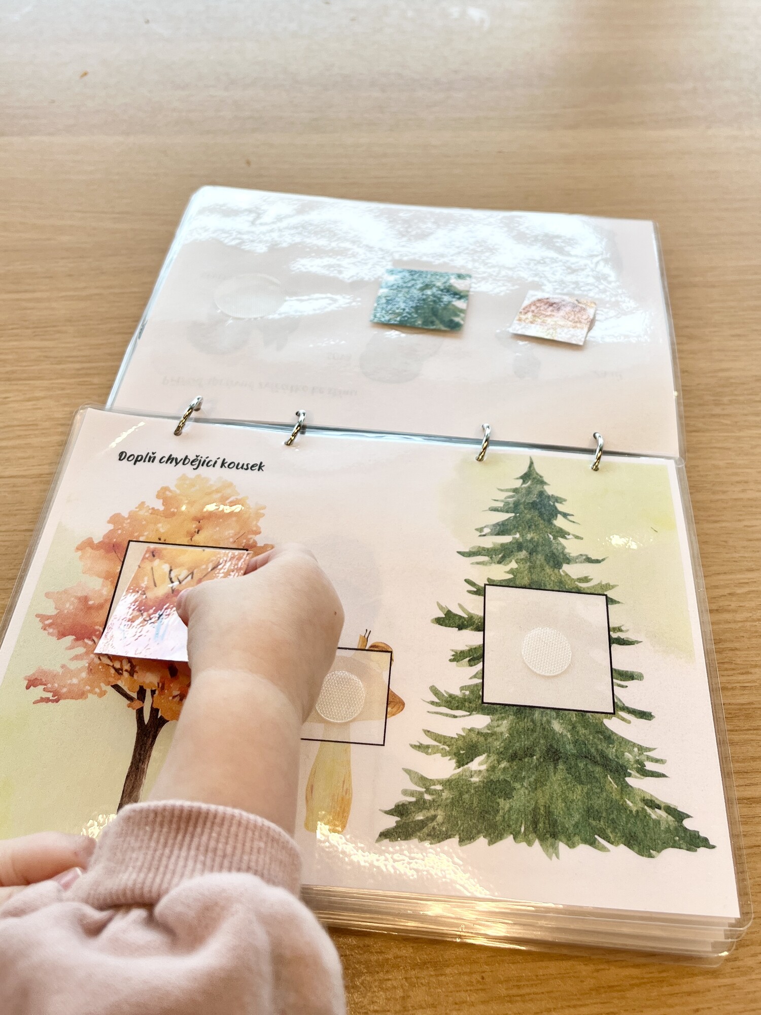 🌱Nalepila jsem suché zipy i na zadní strany listů, pro uchycení obrázků, které následně dítě doplňuje v aktivitách.