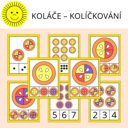 Materiál na téma koláče slouží k procvičení zrakového vnímání a počítání. Je vhodný i k tématům jídlo, posvícení a masopust. Obsahuje 28 kartiček.