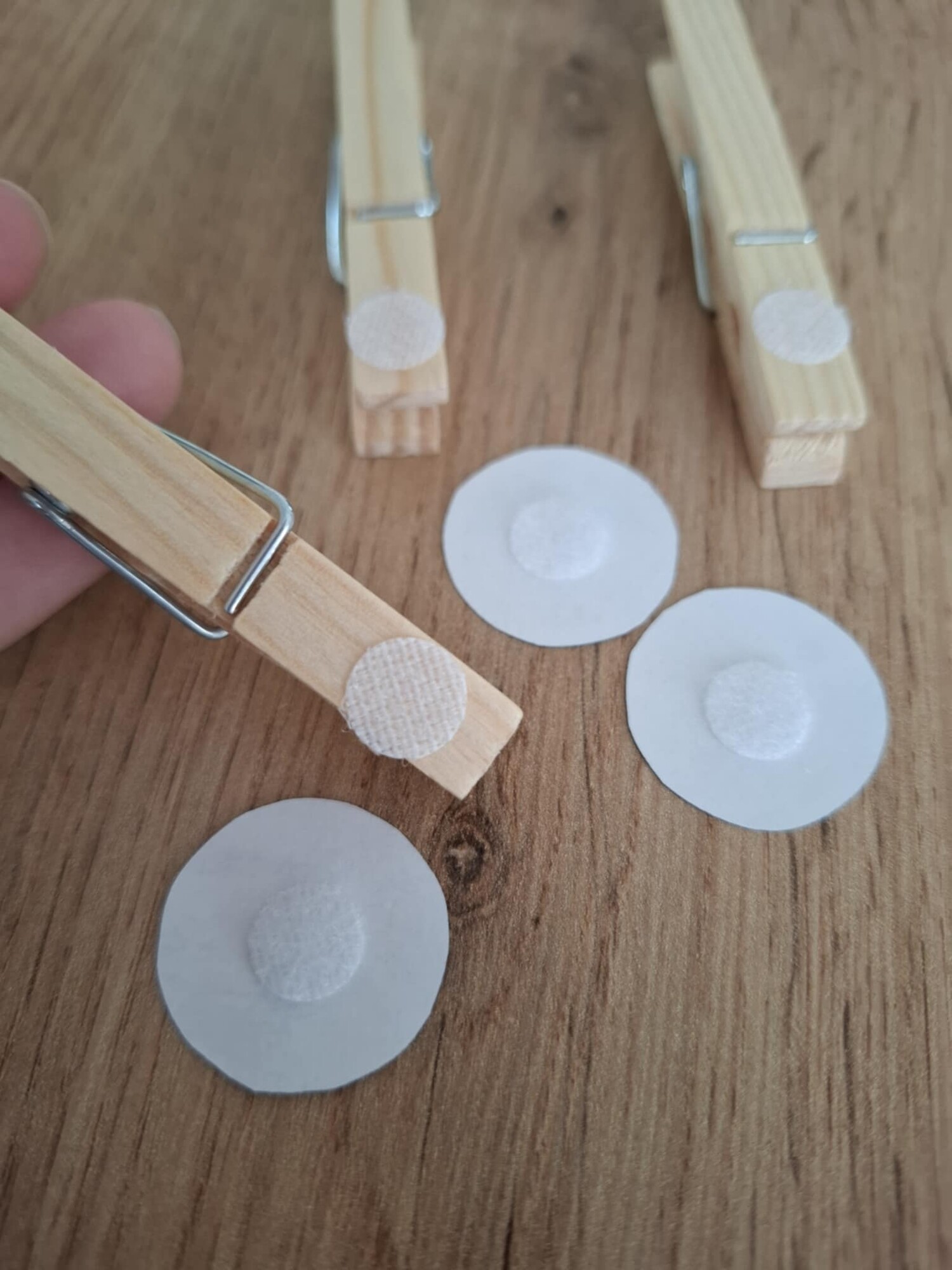 Na malá kolečka přilepíme z druhé strany suchý zip s jemnějším povrchem.