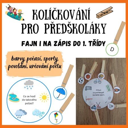 např. přiřaď barvu, přiřaď počet. Žák poté přiřazuje kolíčky, které k daným obrázkům patří