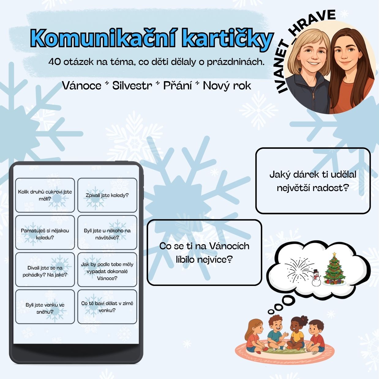 Otázky jsou na téma po vánočních prázdninách typu: Dostal/a jsi něco, co sis přál/a?, Zpívali jste koledy?, Dívali jste se na pohádky? Na jaké? a další.