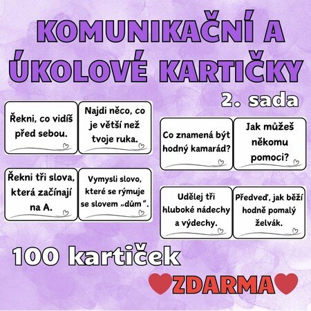 - Otázky k zamyšlení nebo sdílení (komunikační a emoční rozvoj)