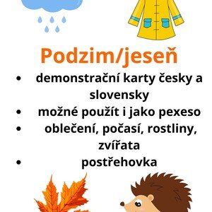 Jednoduché básničky česky a slovensky s kontrastními obrázky na téma podzim.