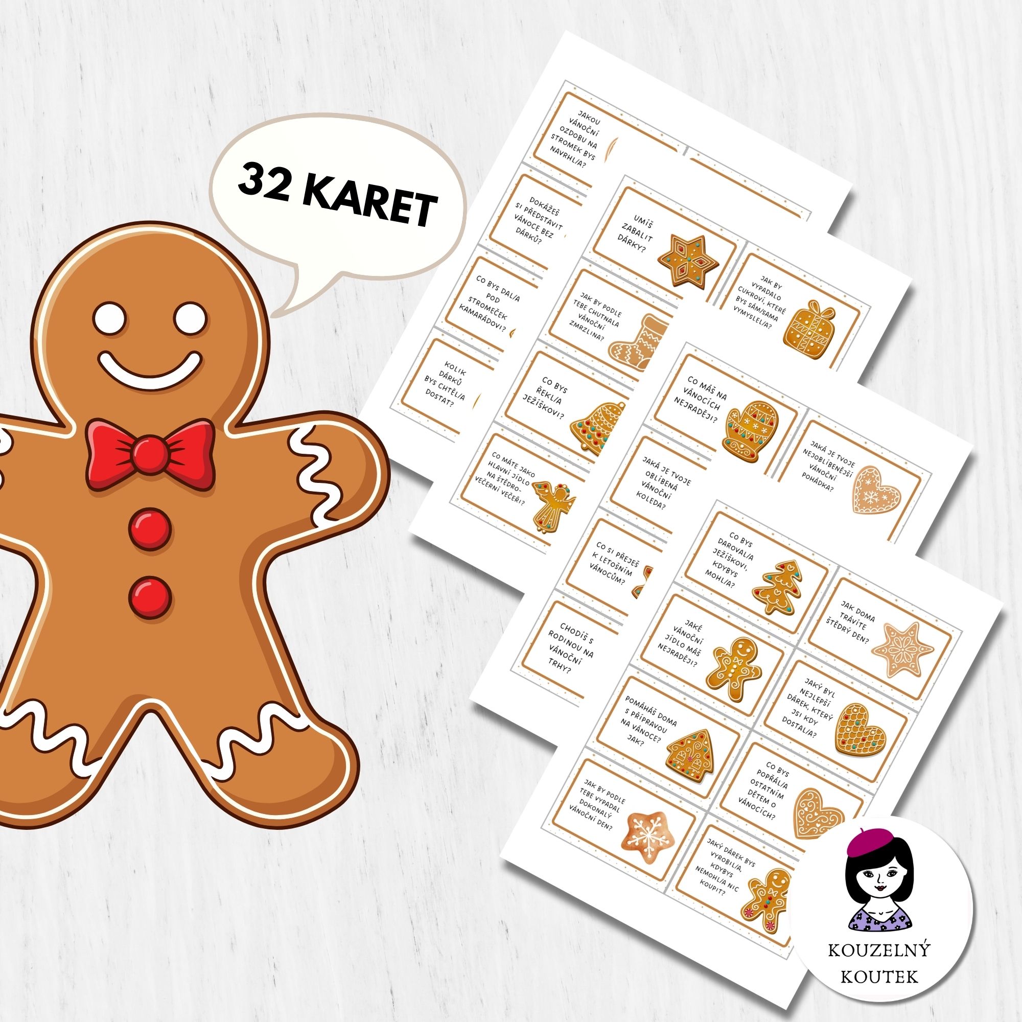 Soubor obsahuje 32 hravých kartiček s otázkami na téma Vánoce