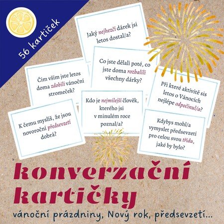 ❄️Soubor obsahuje 56 konverzačních kartiček. Otázky vedou k reflexi i sebereflexi a umožňují vyprávět vlastní zážitky i se zamyslet nad tím, jak by mohl probíhat rok, který nás čeká.