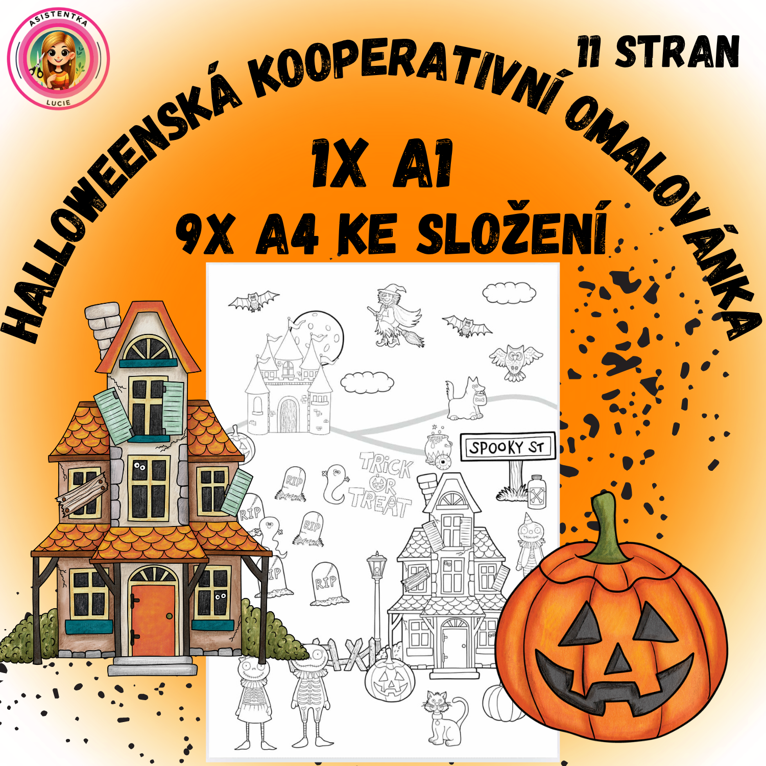 Každý dílek tvoří část společného obrazu – dohromady vznikne velká třídní výzdoba s tematickým motivem (např. dýně, strašidelný dům, duchové, netopýři apod.).