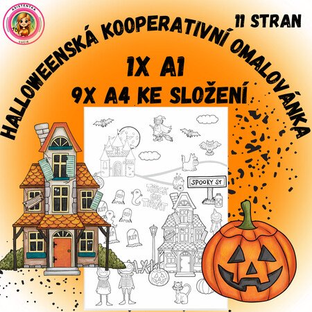 Materiál představuje kooperativní omalovánku s halloweenskou tematikou, určenou k společné tvorbě celé třídy.