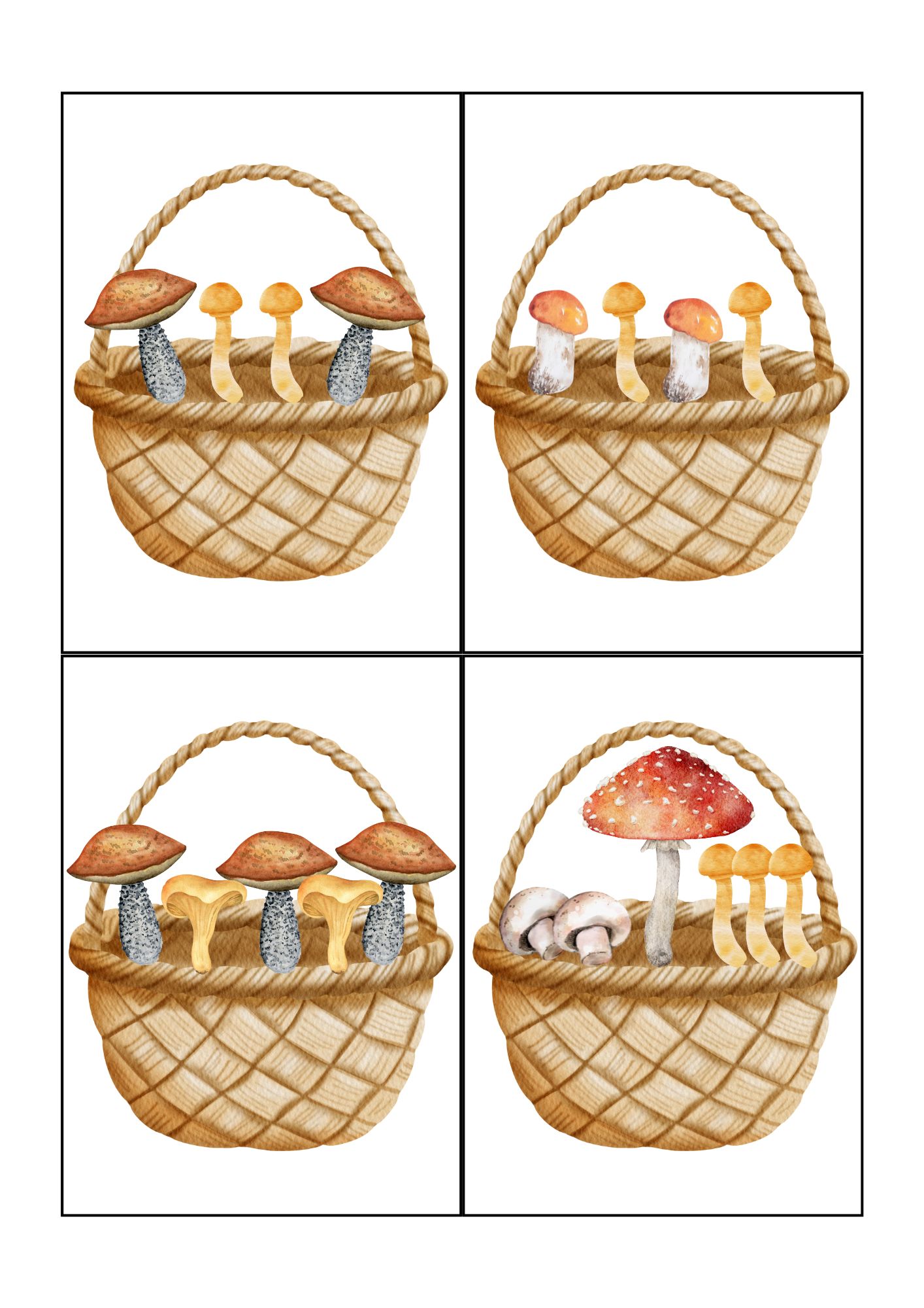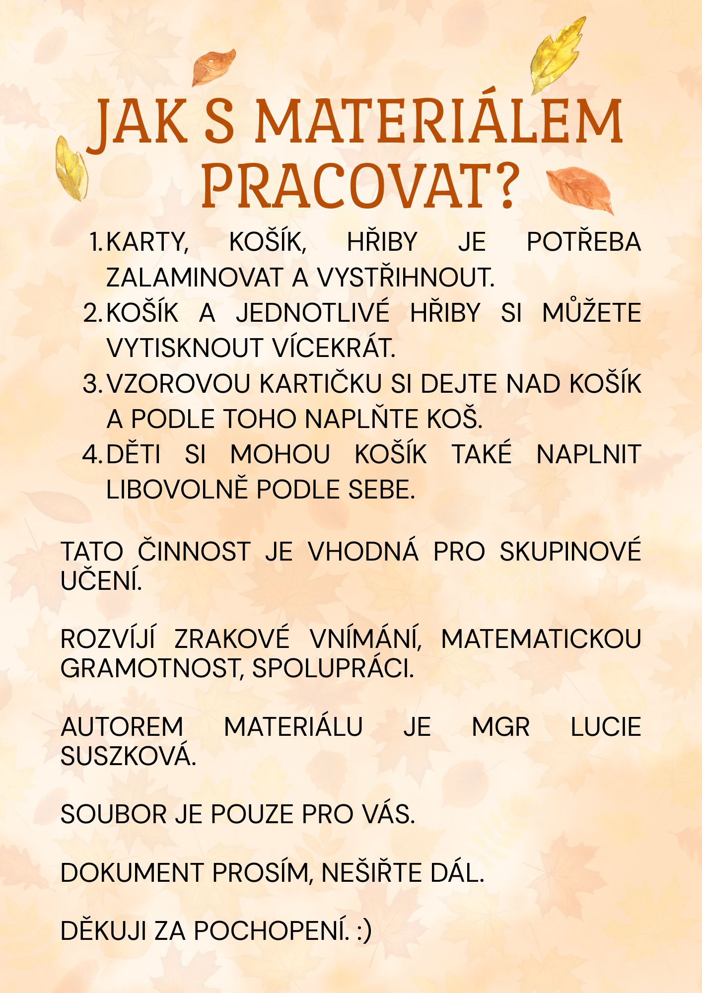 - Karty, košík, hřiby je potřeba zalaminovat a vystřihnout.