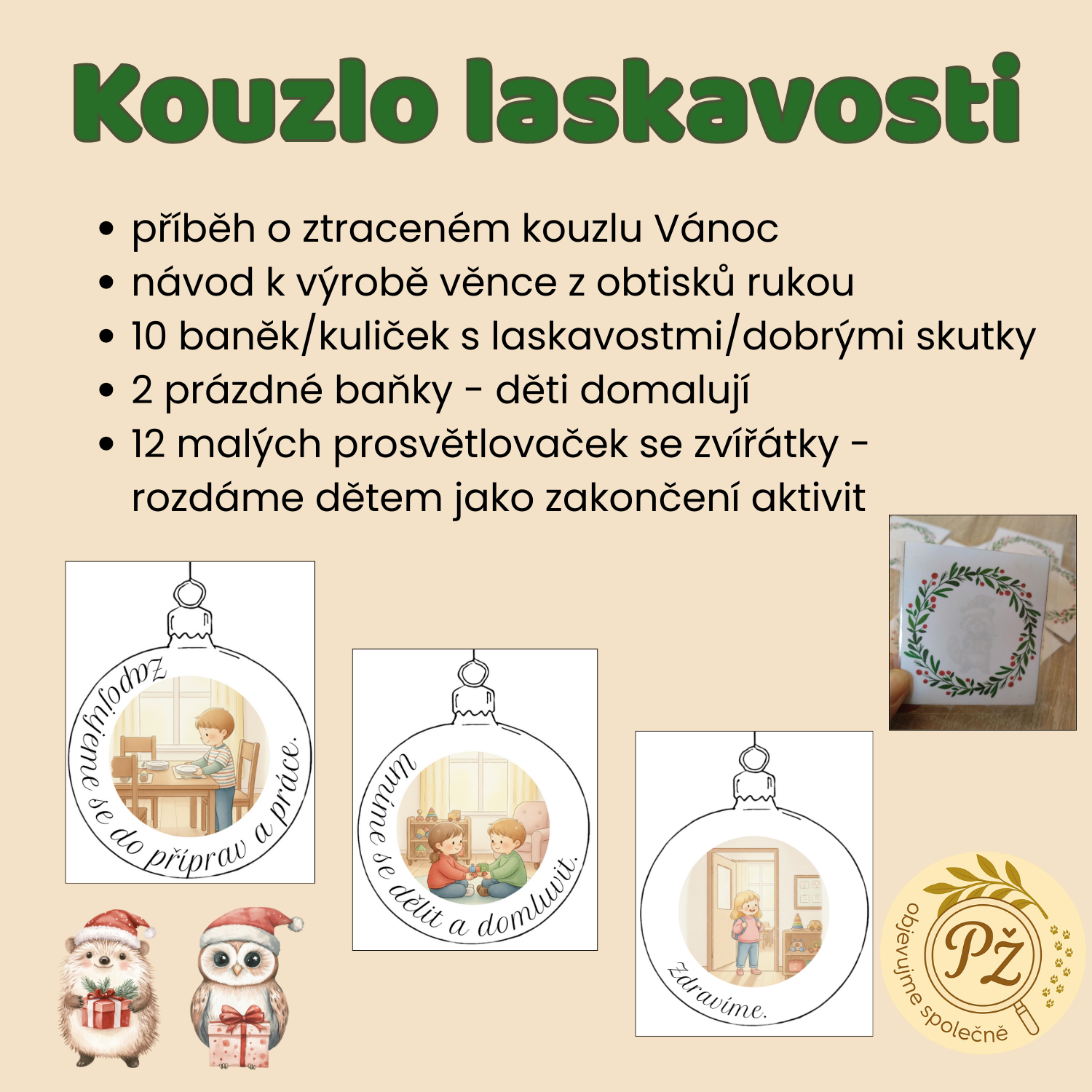 Využila jsem během jednoho dopoledne, ale odkazovat na aktivitu se můžeme po celou dobu adventu. Děti se mohly zamýšlet a zpomalit. Nebylo to o dárcích, ale o společném čase, laskavosti a spojitosti.