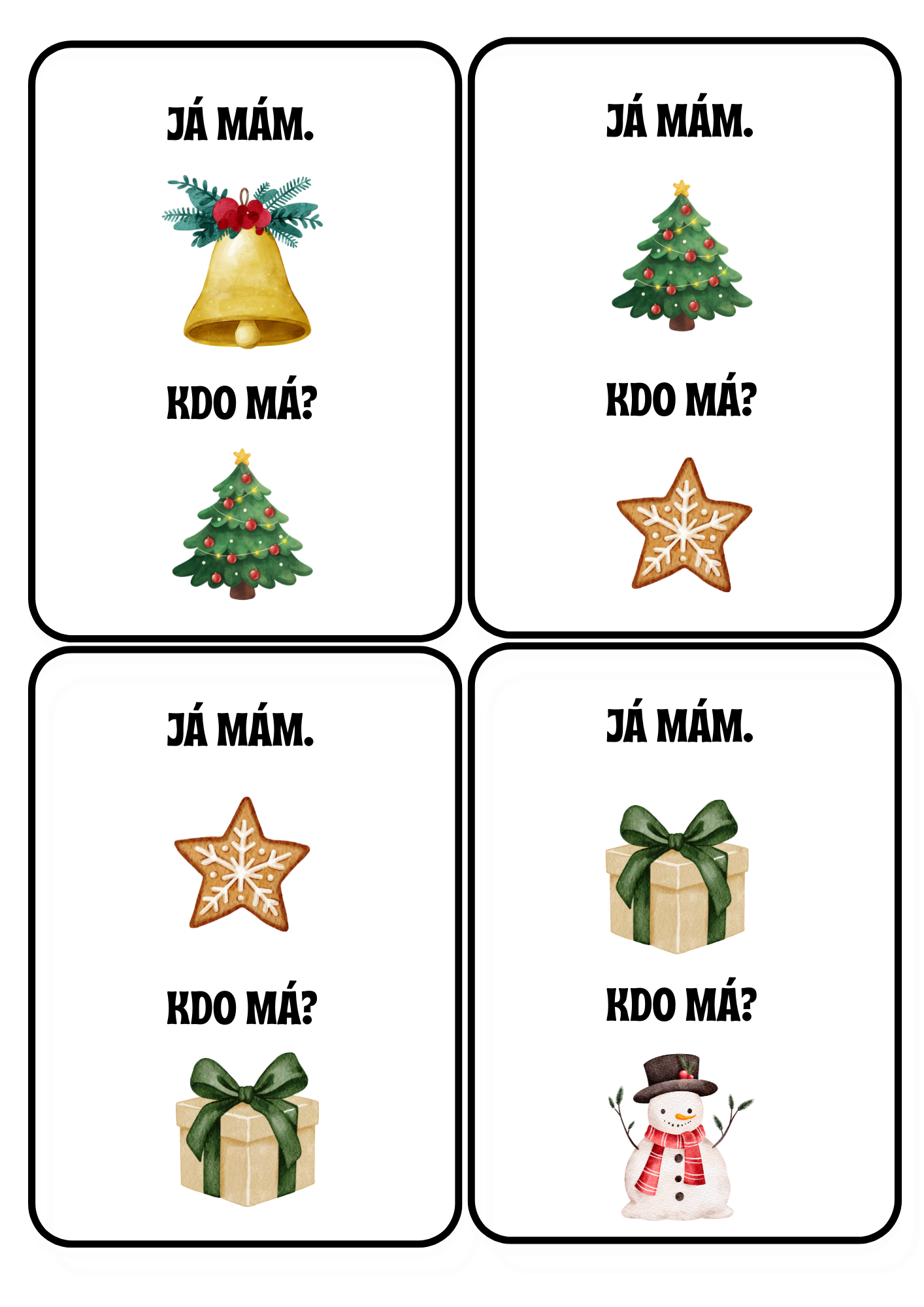 Nezařazené k předmětu>Domino>Já mám, kdo má>Postřehovky>MŠ>MŠ - předškoláci>1.>🎁 Vánoce